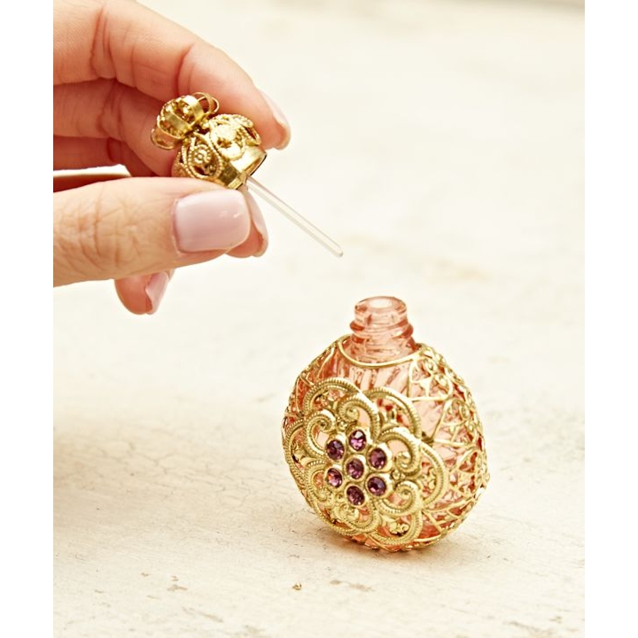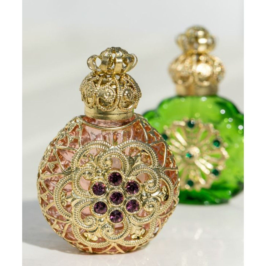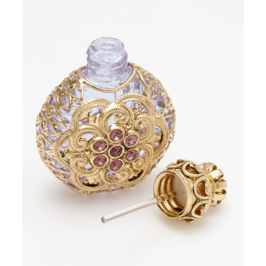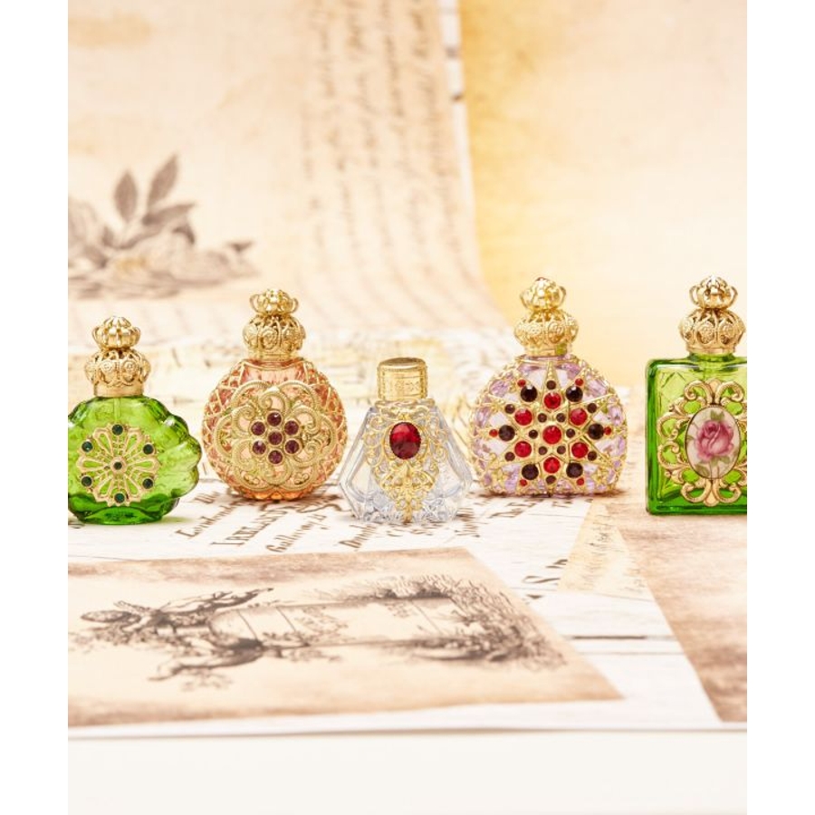 お花のように繊細な装飾が宝石のように輝くゴージャスな香水瓶。ガラス細工で有名なチェコで作られました。香りを持ち運ぶだけでなく、お部屋のインテリアとしても。