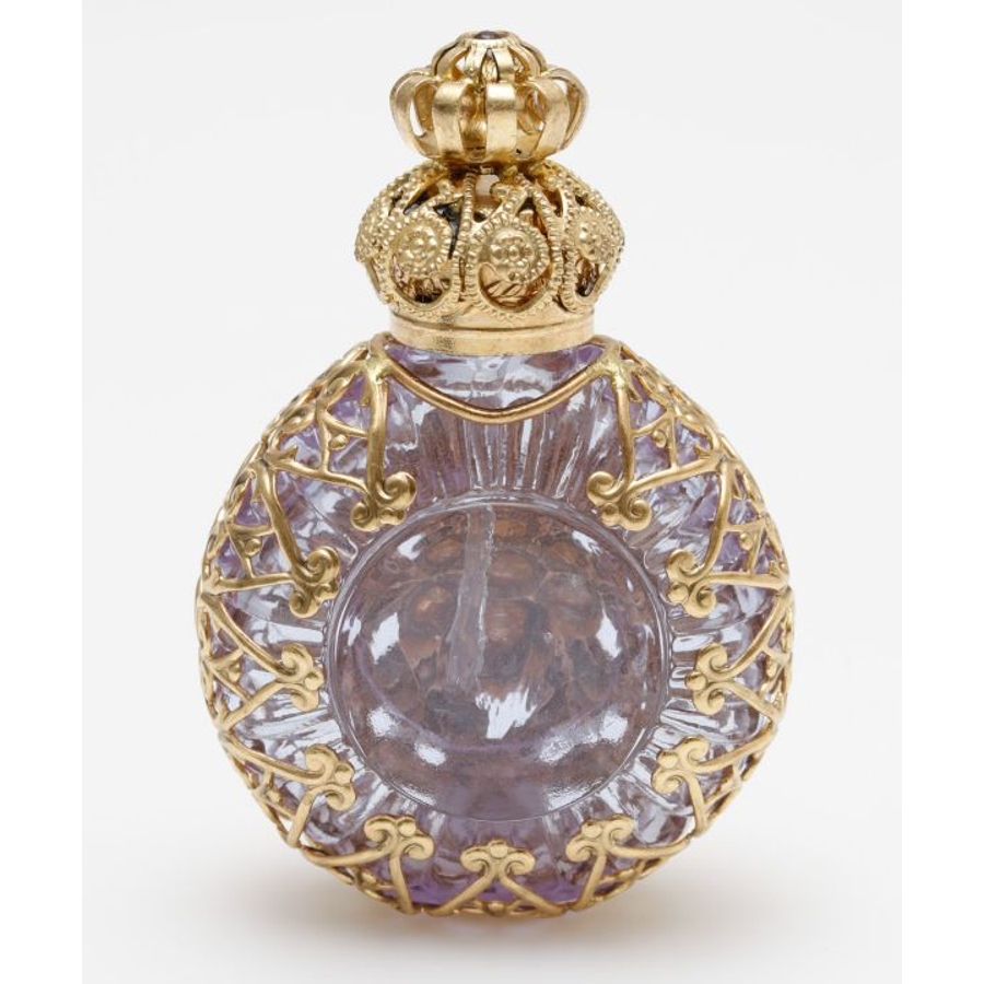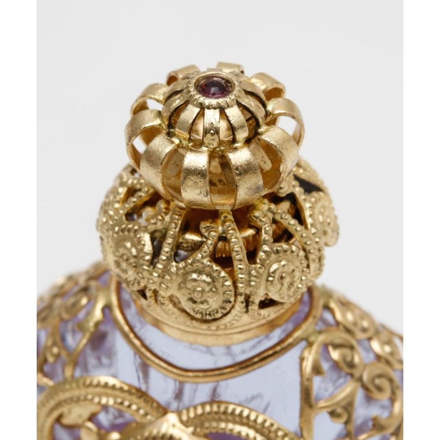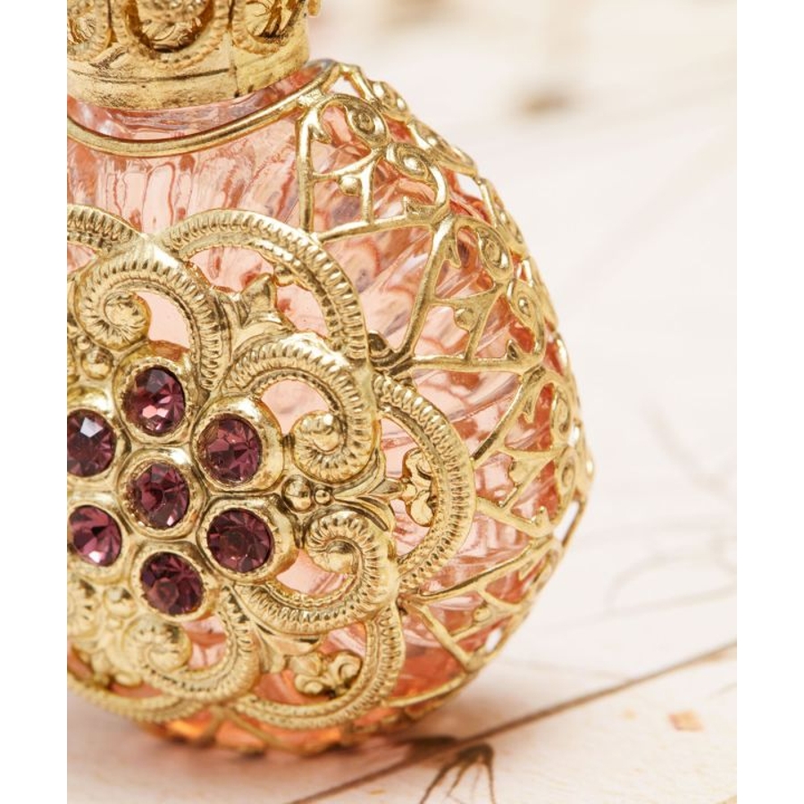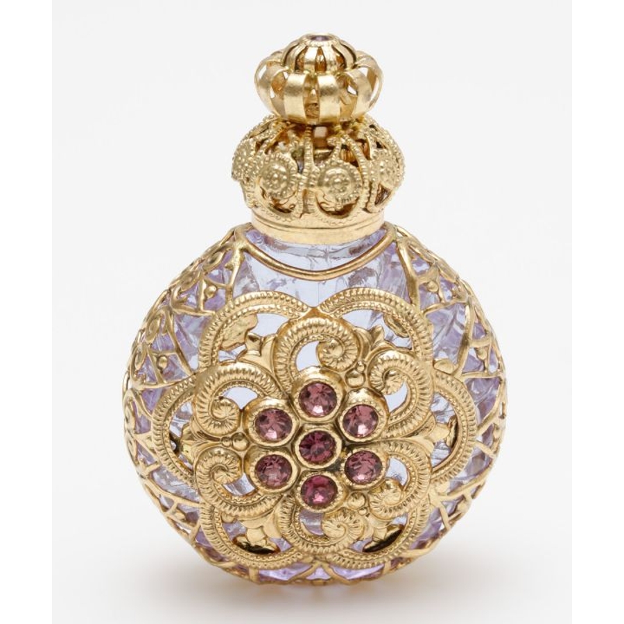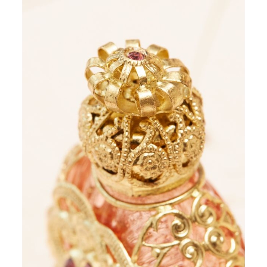 お花のように繊細な装飾が宝石のように輝くゴージャスな香水瓶。ガラス細工で有名なチェコで作られました。香りを持ち運ぶだけでなく、お部屋のインテリアとしても。