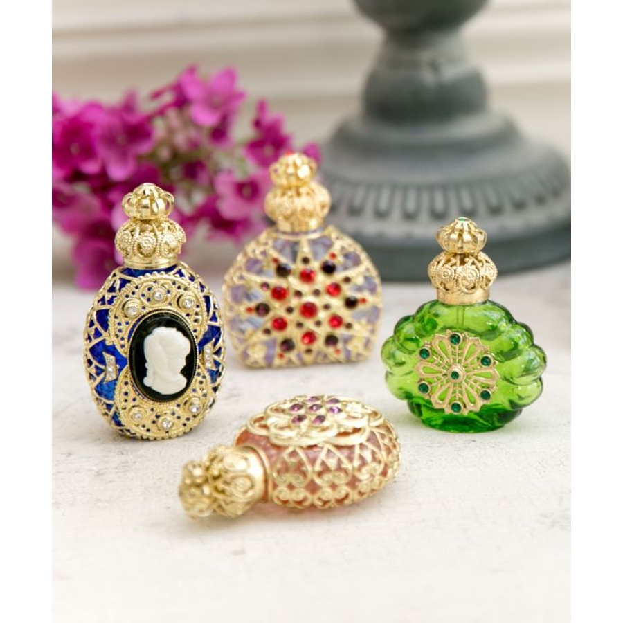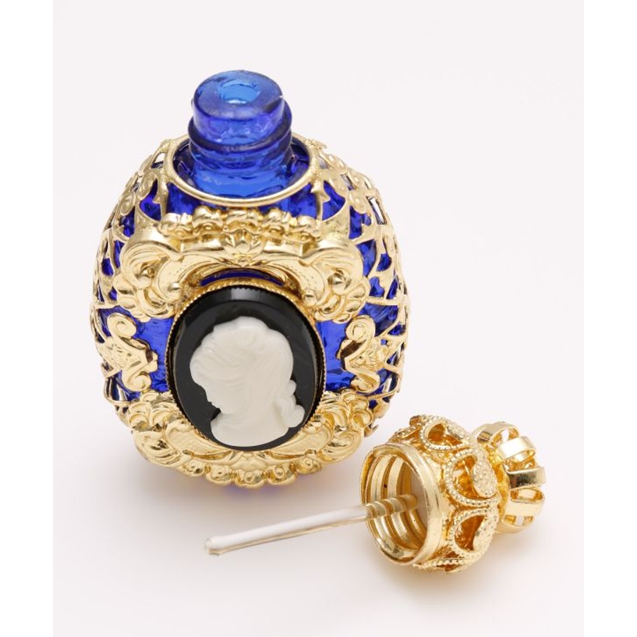 まるで宝石のようにきらきらと輝くアンティーク調の装飾や、女性の横顔を施した繊細なカメオが美しい香水瓶です。ガラス細工で有名なチェコで作られました。お気に入りの香りを持ち運んで、いつでも楽しめます。