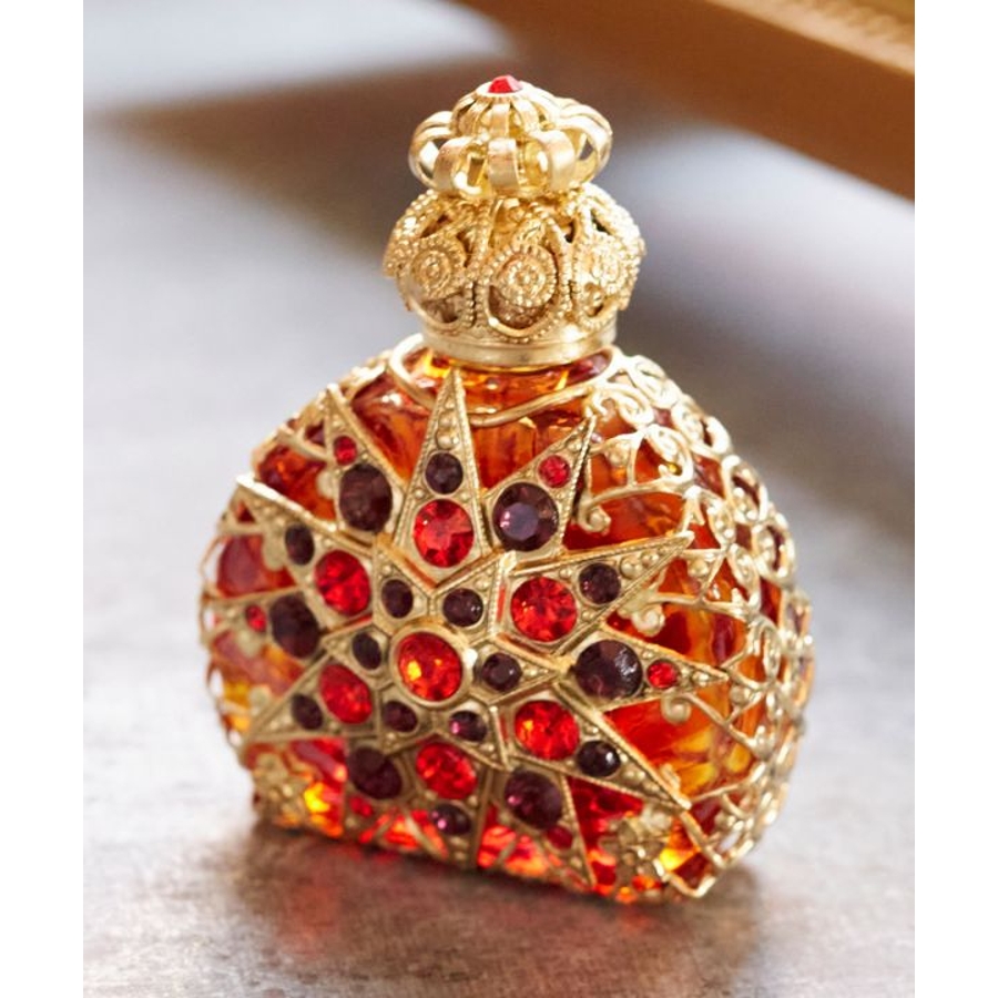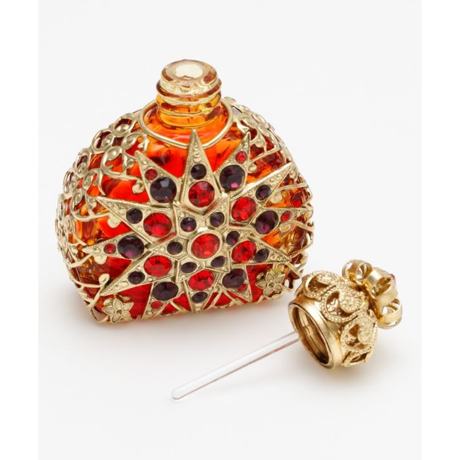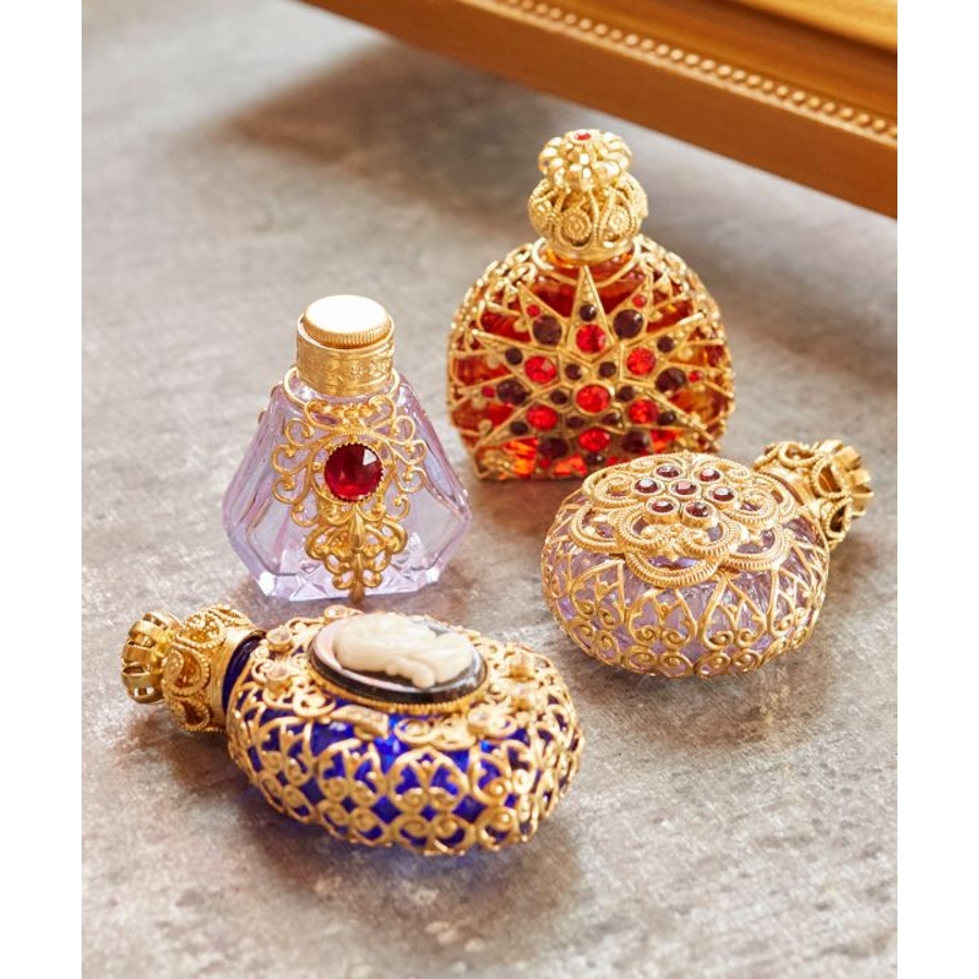 丸くて可愛らしいフォルムに、宝石のような色とりどりで豪華な装飾が煌く香水瓶。ガラス細工で有名なチェコで作られました。いつでもどこでもお気に入りの香りで包んでくれます。