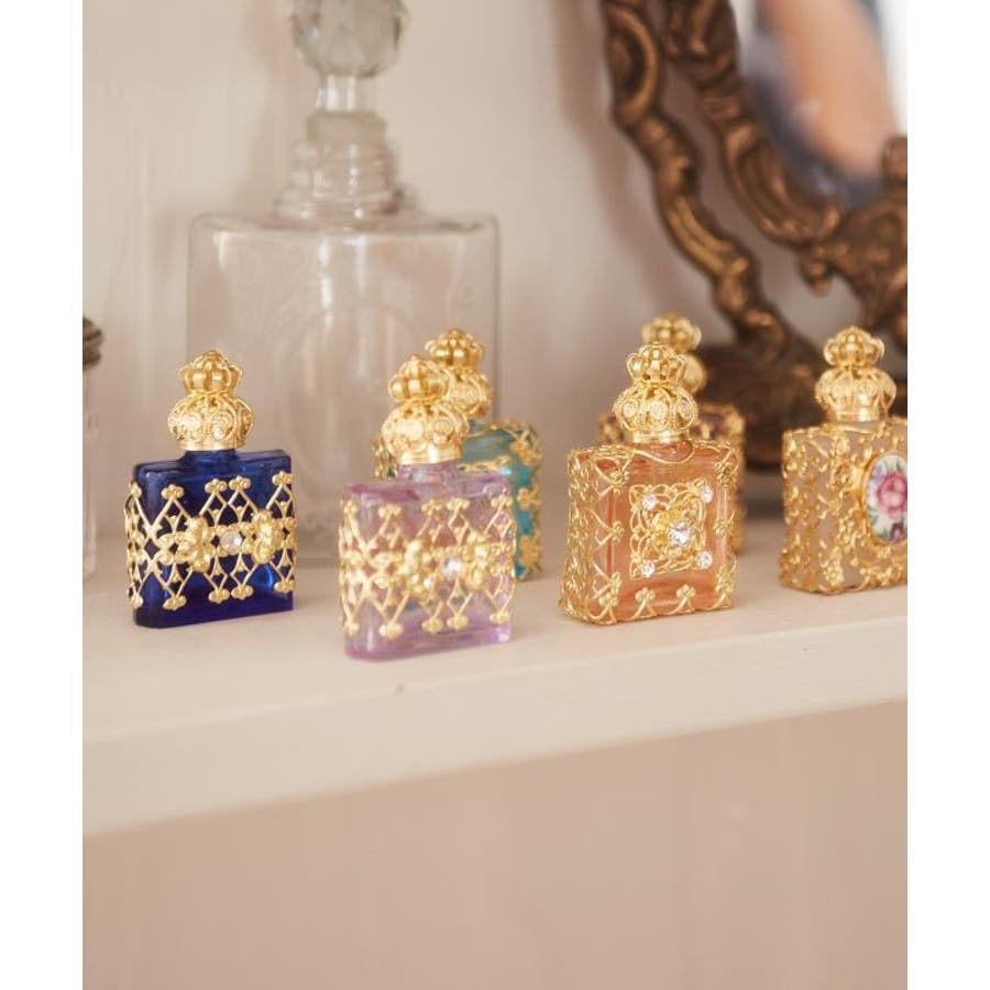 ガラス細工で有名なチェコで作られた、お花のように繊細な装飾に、宝石を散りばめたようなゴージャスな香水瓶。宝石のような色とりどりで豪華な装飾が煌く、小さくて可愛らしい。いつでもどこでもお気に入りの香りで包んでくれます。※香水、アロマオイル、アロマウォーター等の液体を入れて使用できます。※手作りのため若干の個体差がございます。
