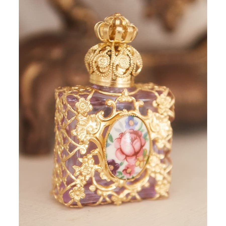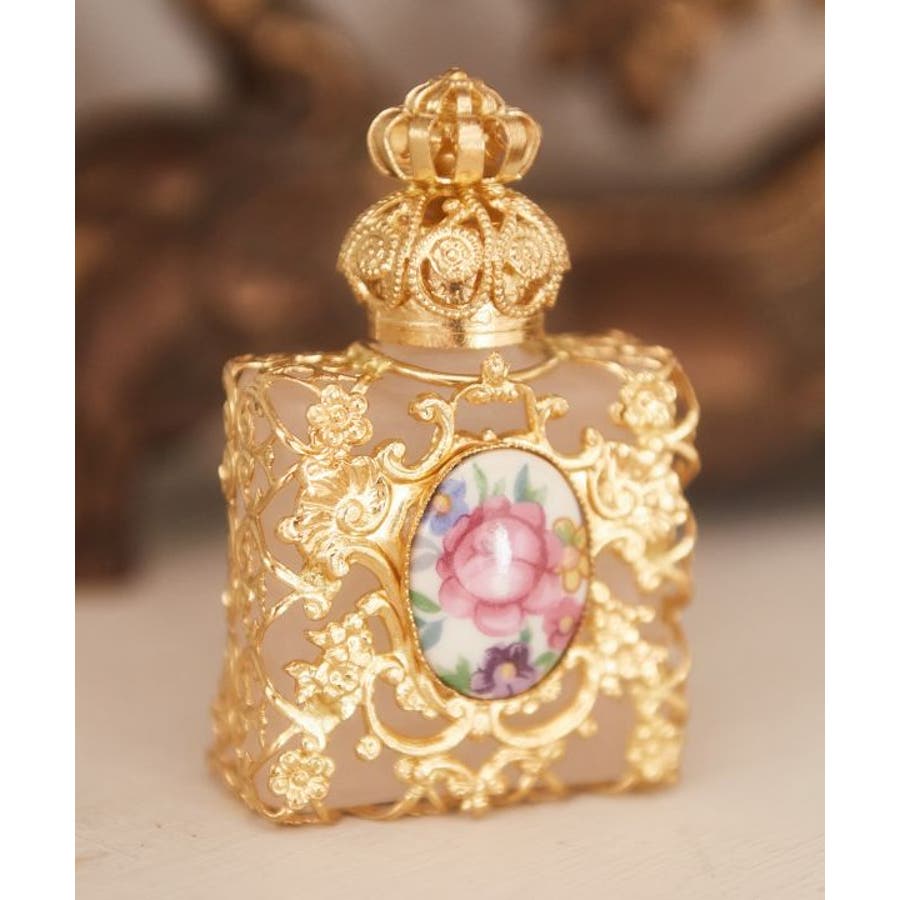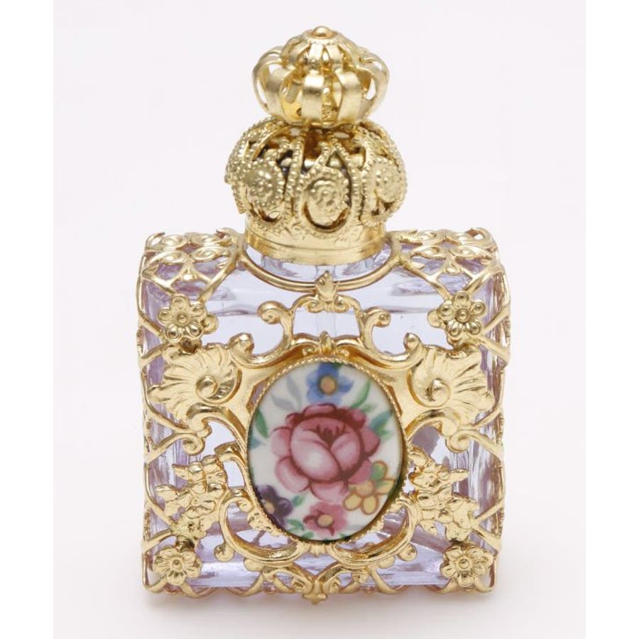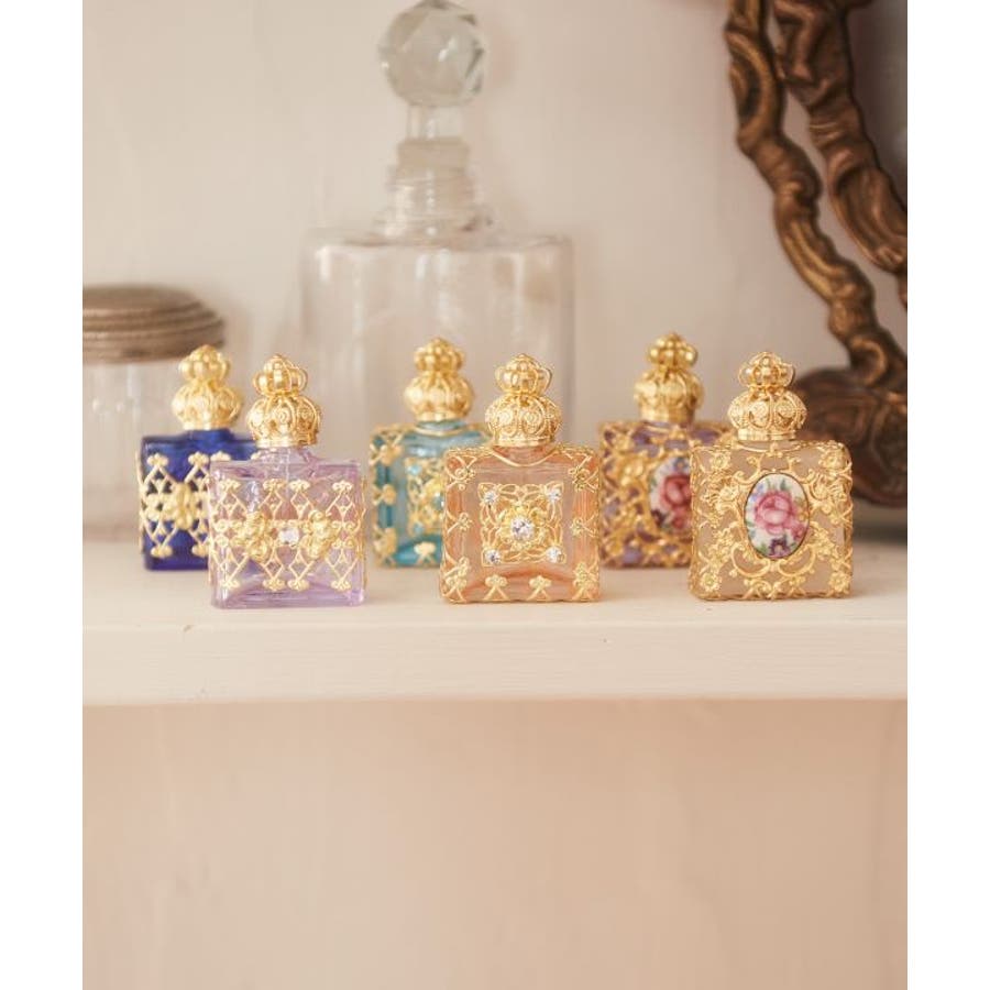 ガラス細工で有名なチェコで作られた、お花のように繊細な装飾に、宝石を散りばめたようなゴージャスな香水瓶。宝石のような色とりどりで豪華な装飾が煌く、小さくて可愛らしい。いつでもどこでもお気に入りの香りで包んでくれます。※香水、アロマオイル、アロマウォーター等の液体を入れて使用できます。※手作りのため若干の個体差がございます。