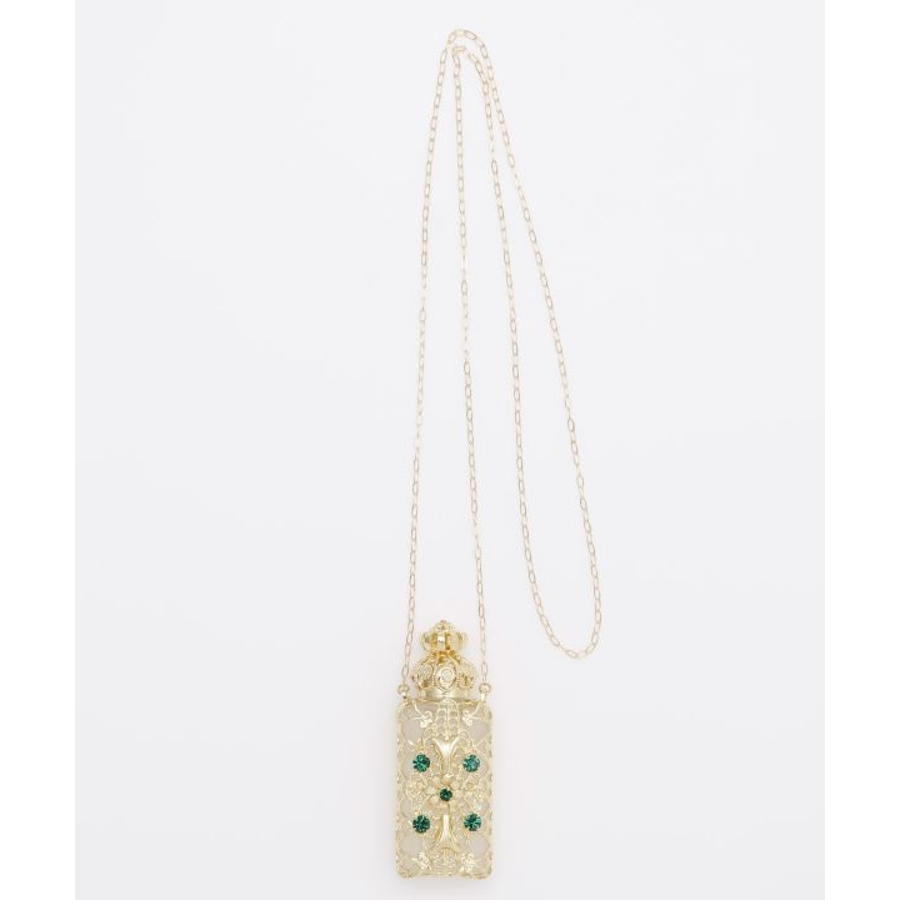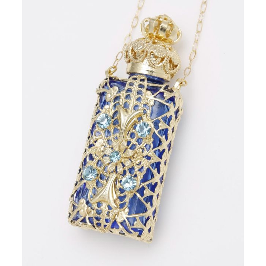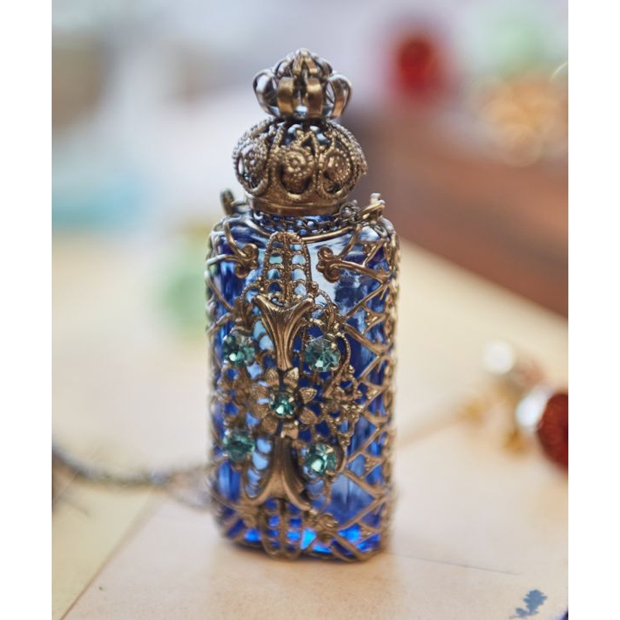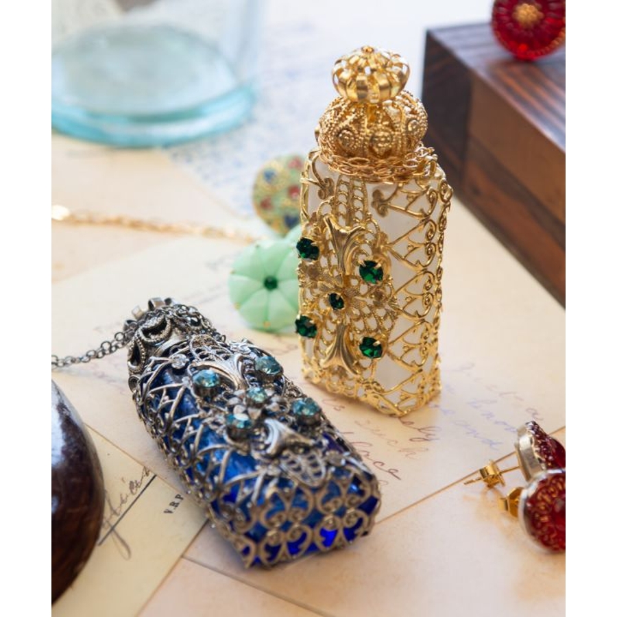 ガラス細工で有名なチェコで、手作業で作られた香水瓶のペンダント。アンティーク調の豪華な装飾が胸元できらりと光ります。いつでもどこでもお気に入りの香りを持ち運んでお楽しみいただけます。