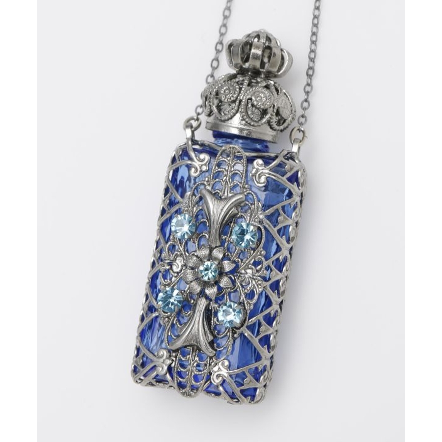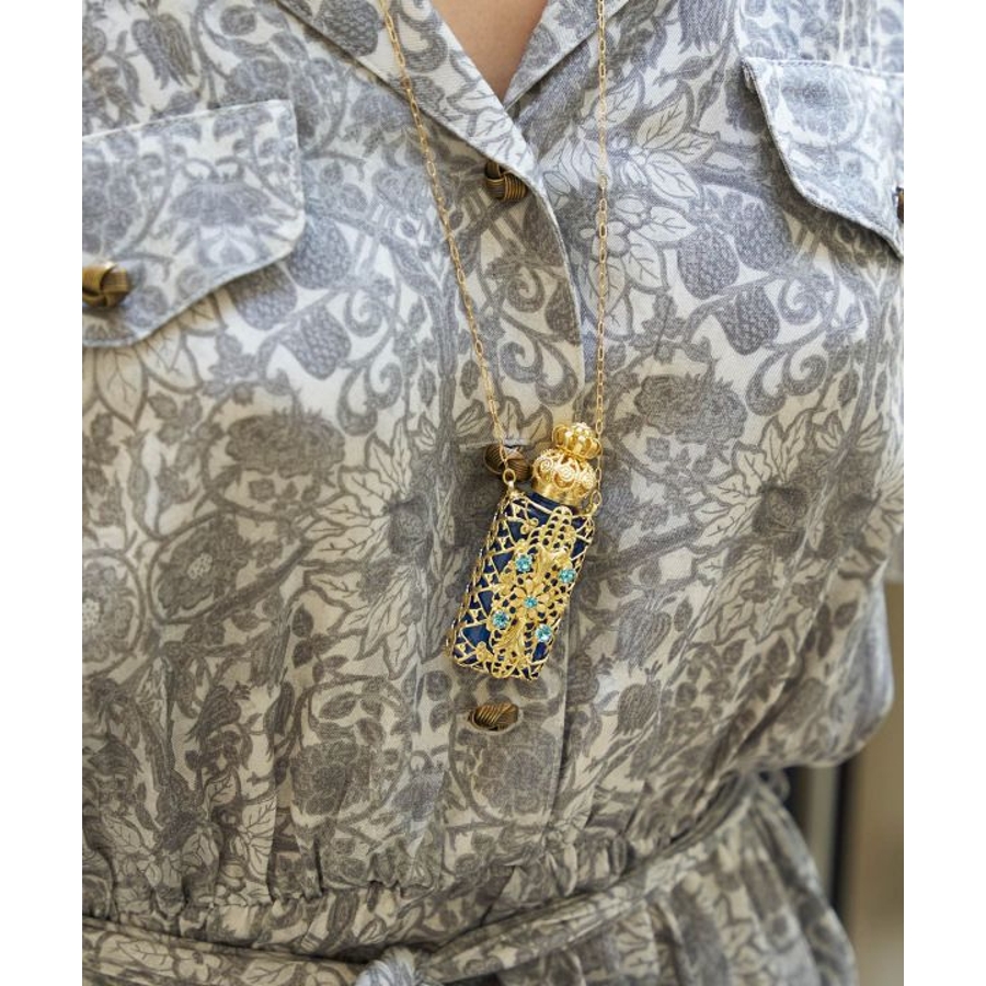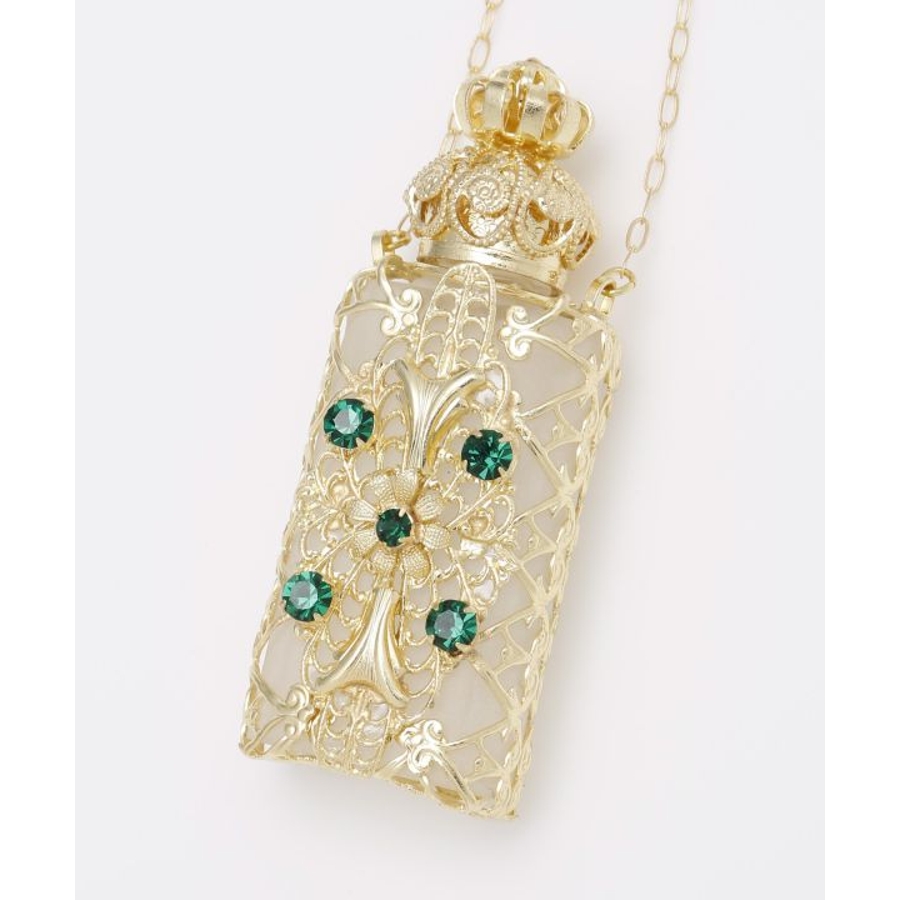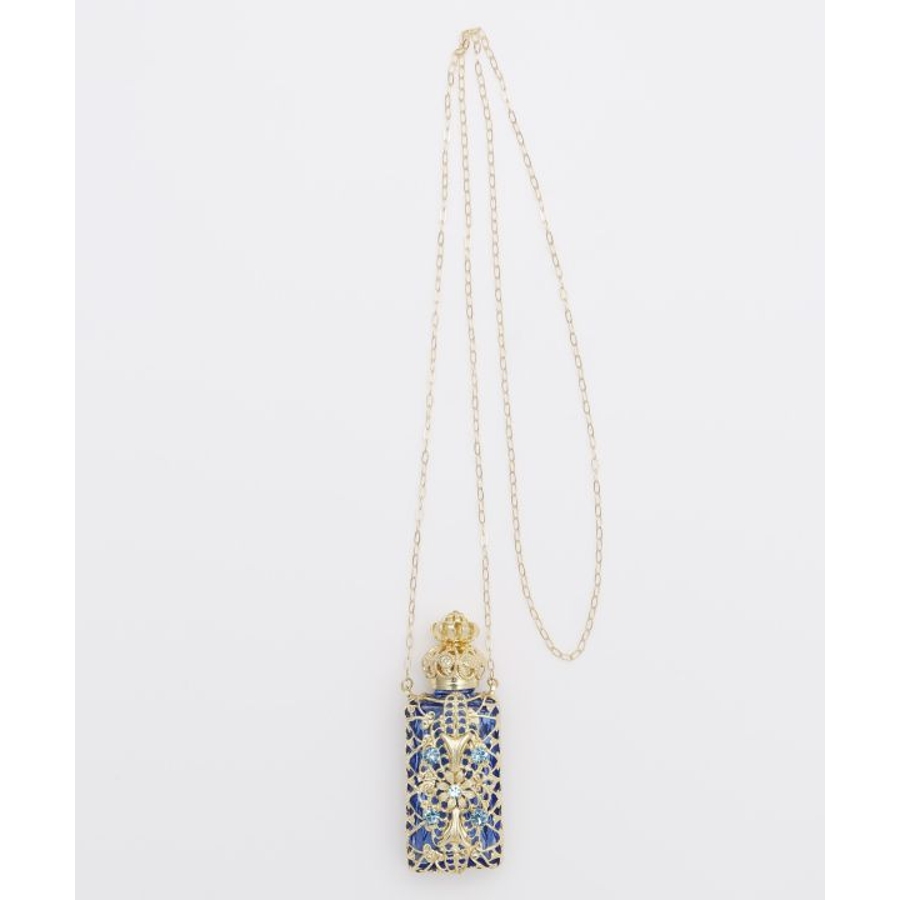 ガラス細工で有名なチェコで、手作業で作られた香水瓶のペンダント。アンティーク調の豪華な装飾が胸元できらりと光ります。いつでもどこでもお気に入りの香りを持ち運んでお楽しみいただけます。