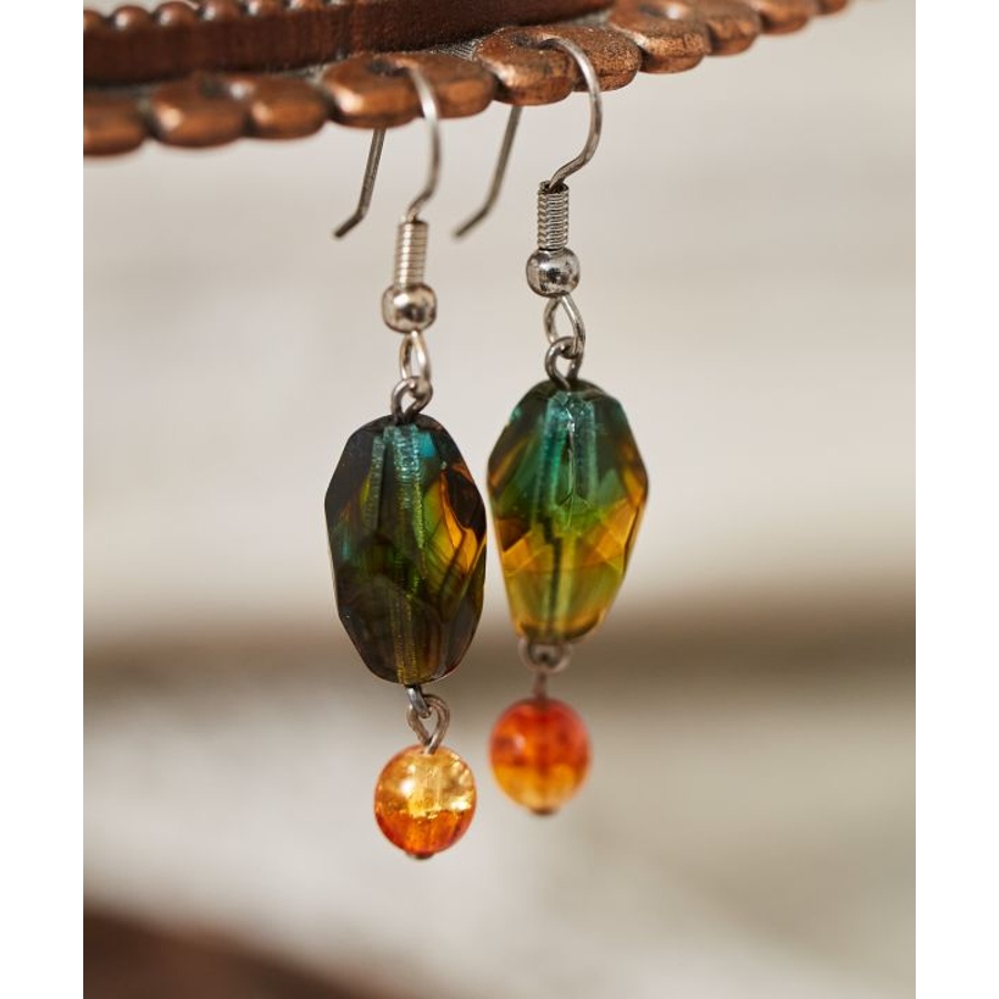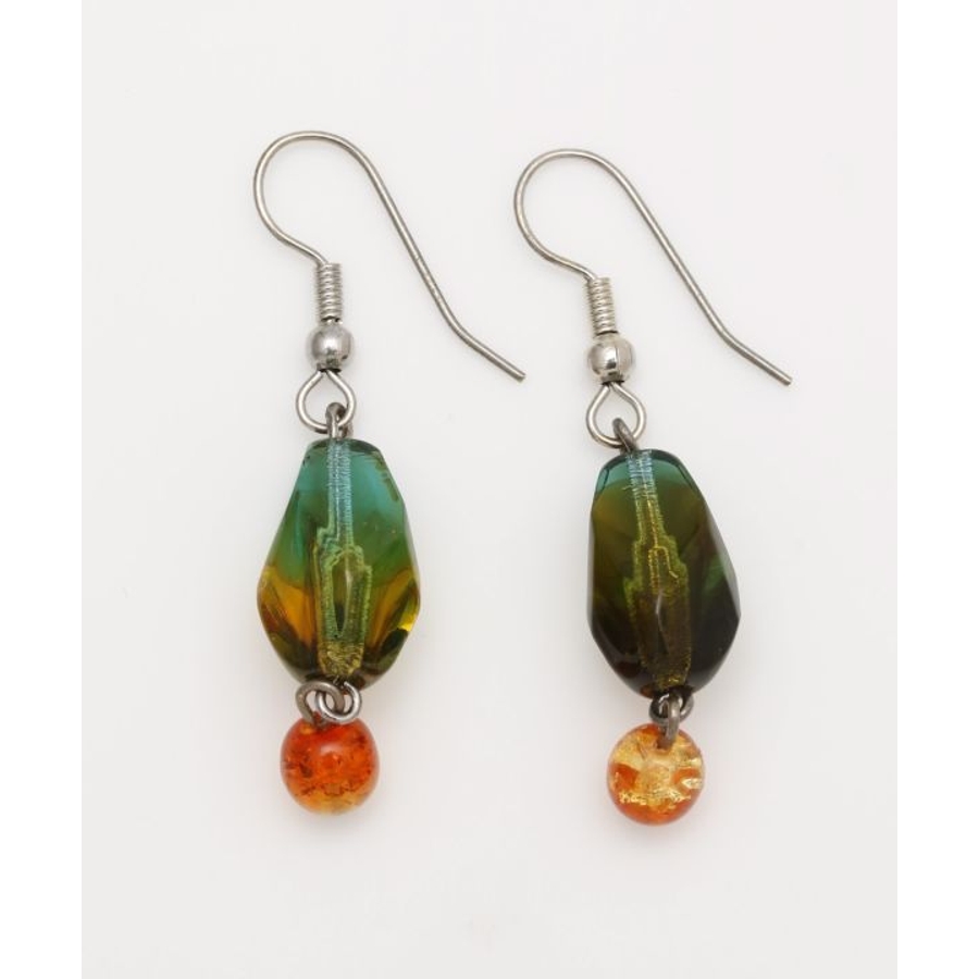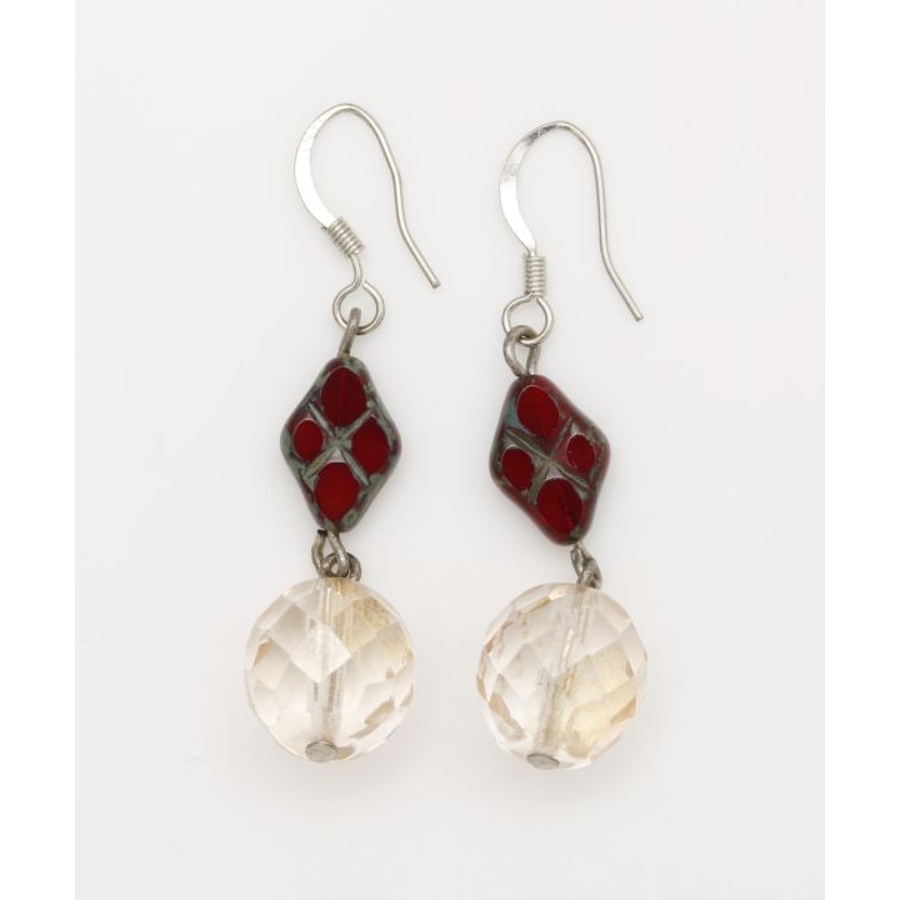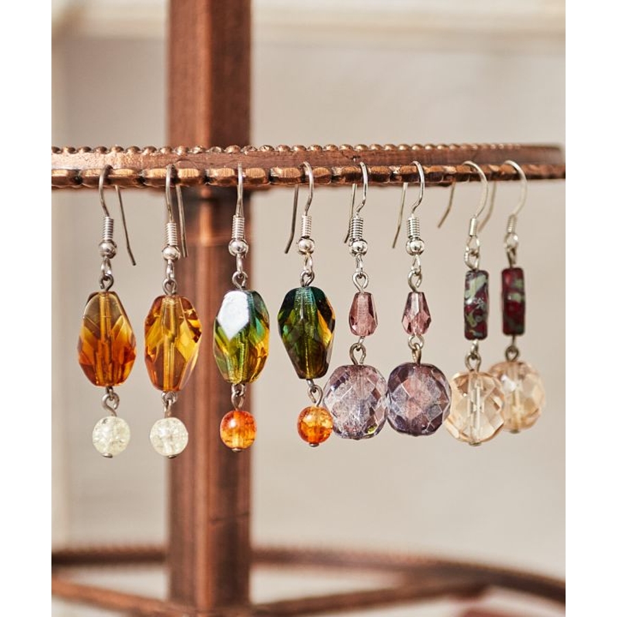 チェコ製のガラスビーズで作られた可愛らしいピアス。どこか素朴で、民芸品のようなあたたかみを感じるデザイン。