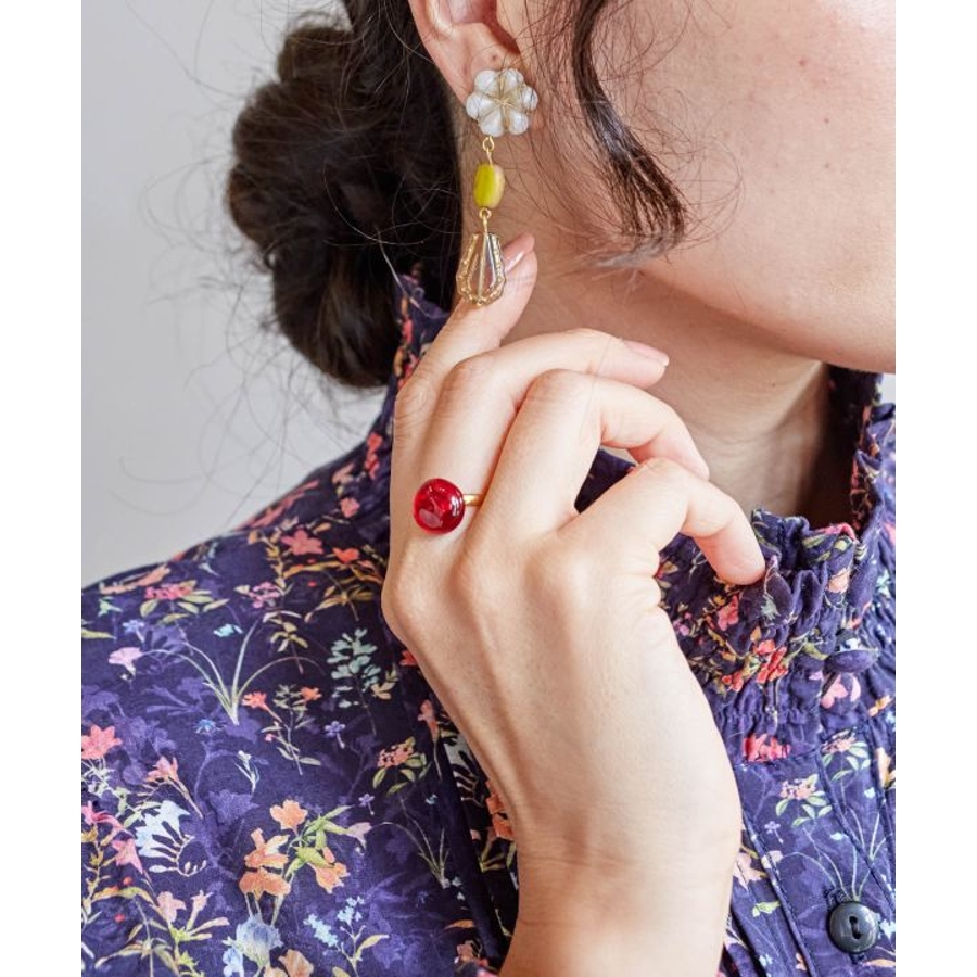 伝統のチェコガラスを使用したシンプルなデザインのリング。どんな洋服にもコーディネートしやすいレトロな雰囲気漂うカラーのリングは、プレゼントにもおすすめです。サイズ調整可能。