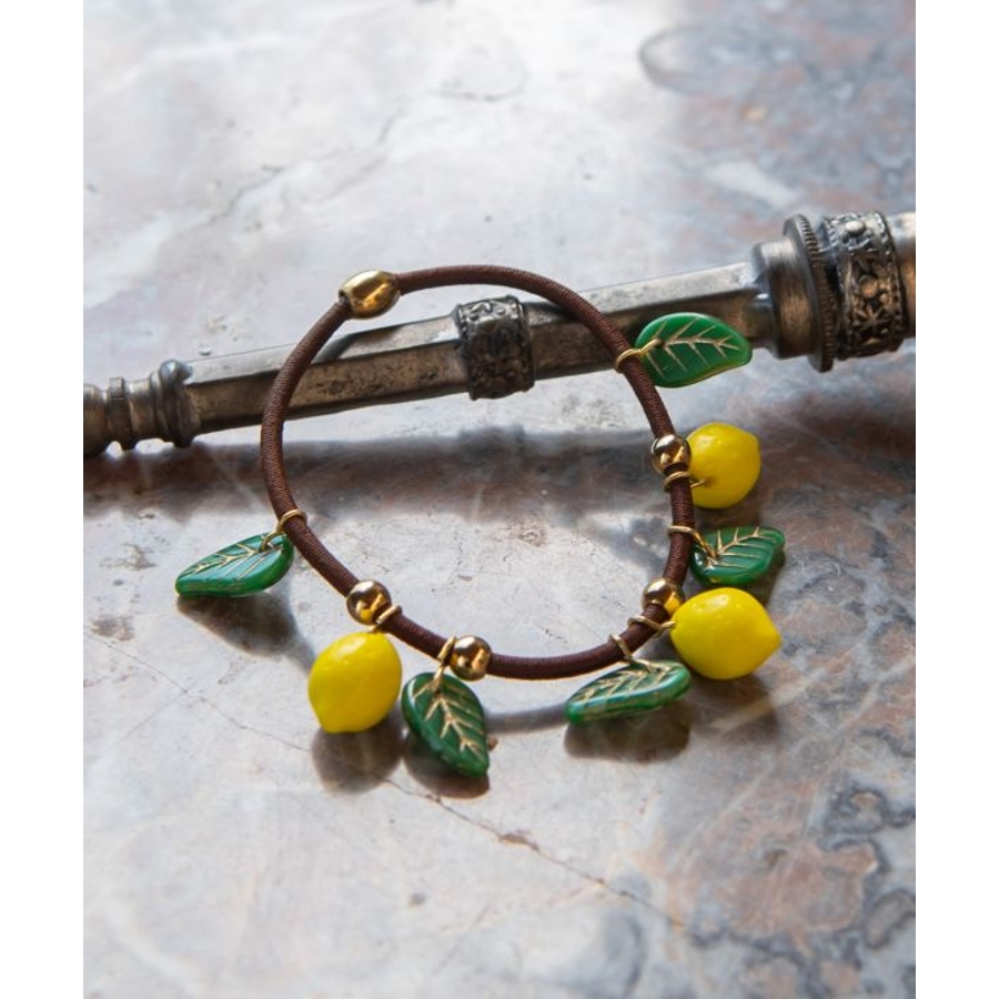 ヨーロッパの豊かな自然に実るフルーツをかたどったブレスレット。チェコガラスでつくられていて、レトロな魅力のアクセサリーです。