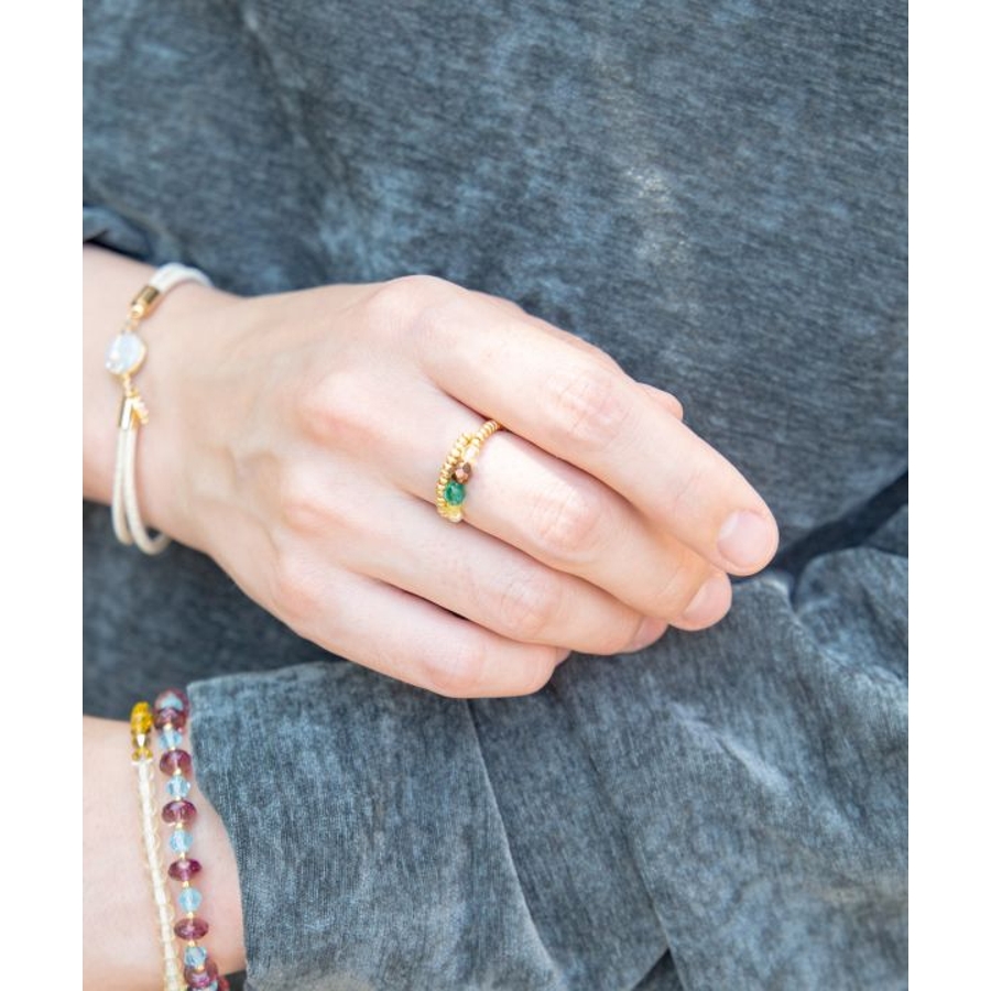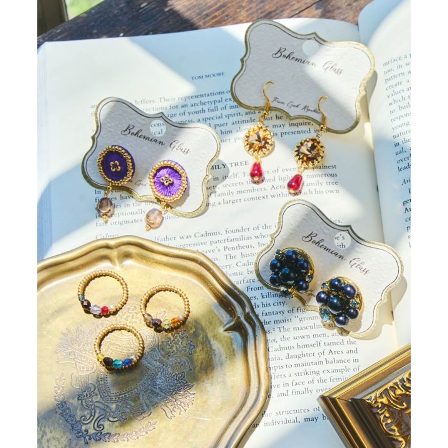 チェコガラスを使用してつくられた指輪。どの色合いも優しい印象で使いやすいデザインとなっています。ギフトにもおすすめです。