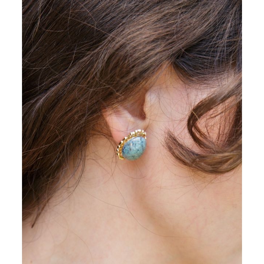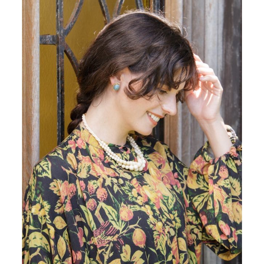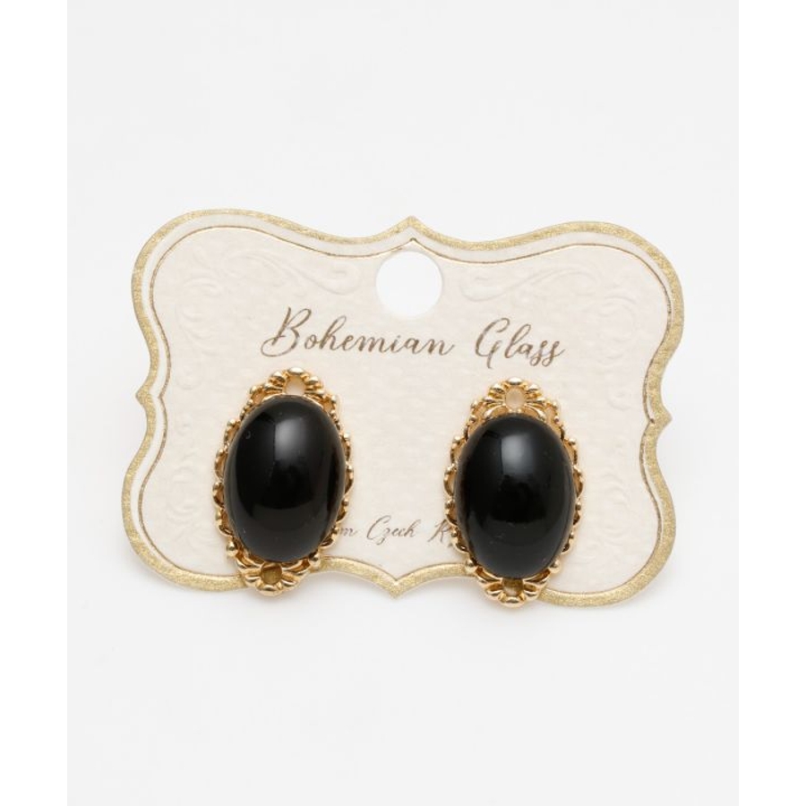 大ぶりのチェコガラスでつくられた存在感のあるピアス。アンティークを彷彿とさせるレトロなデザインなので、どんなお洋服でも合わせやすい。ギフトにもおすすめです。
