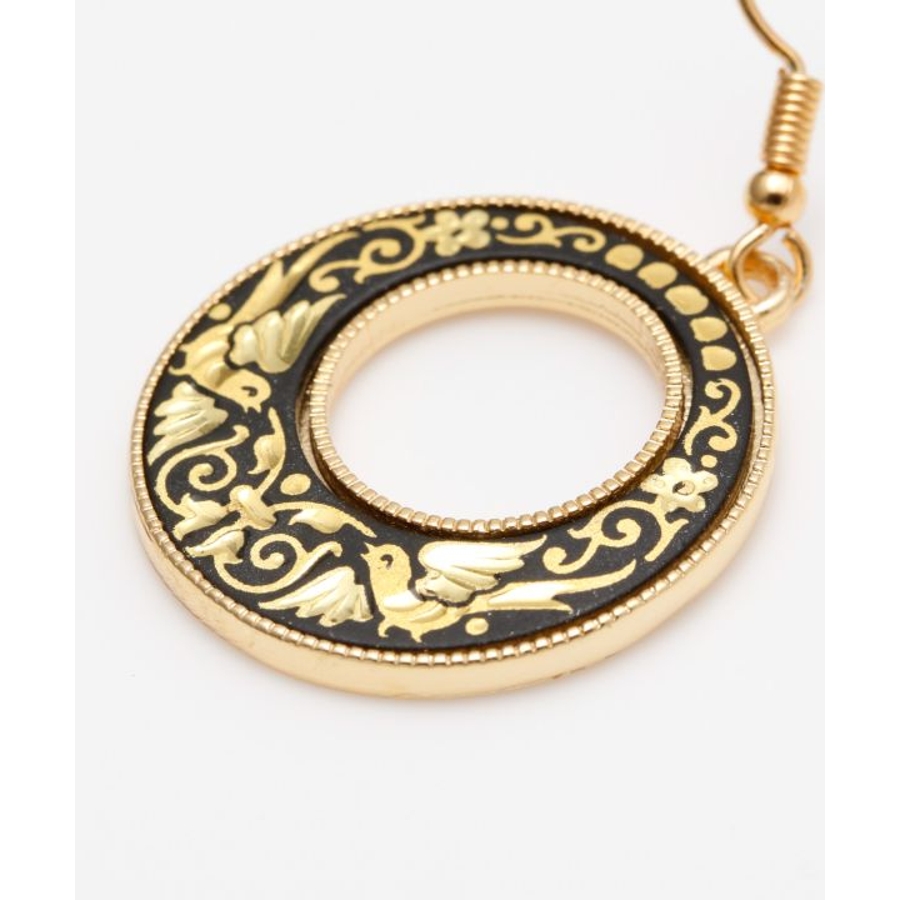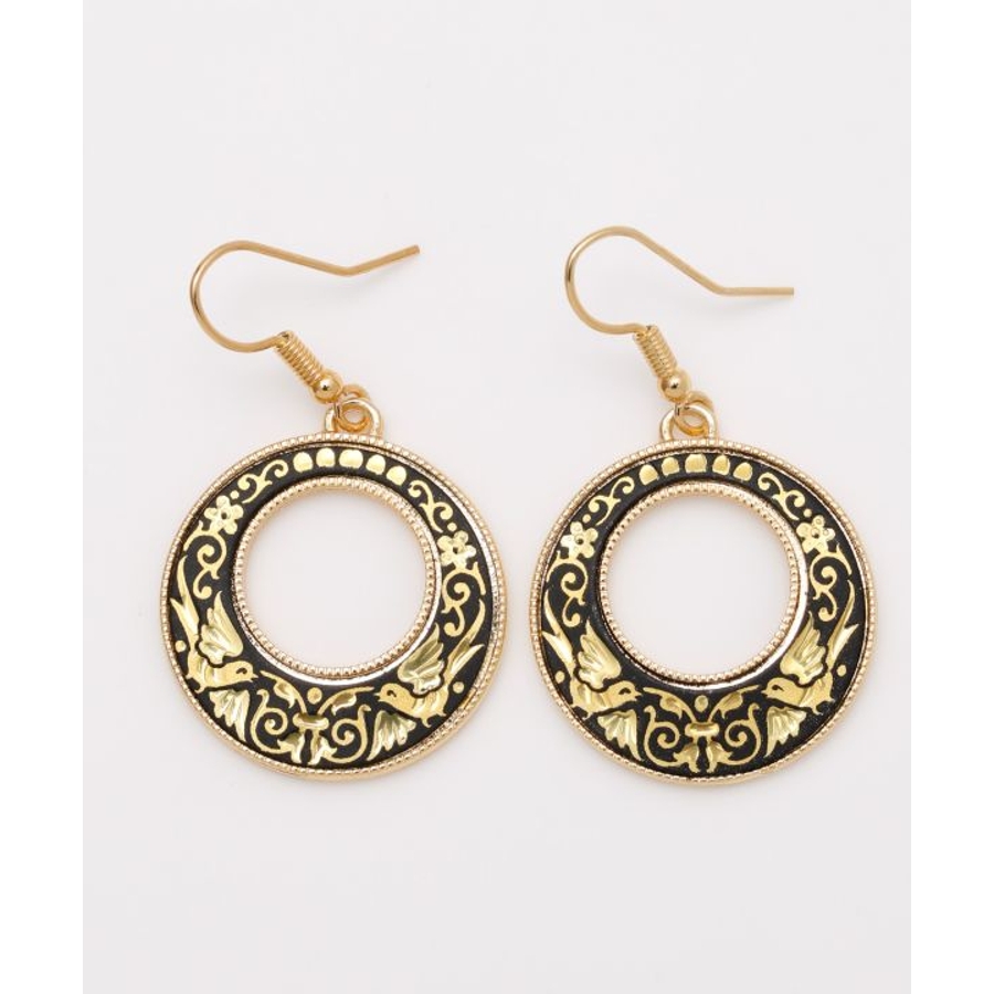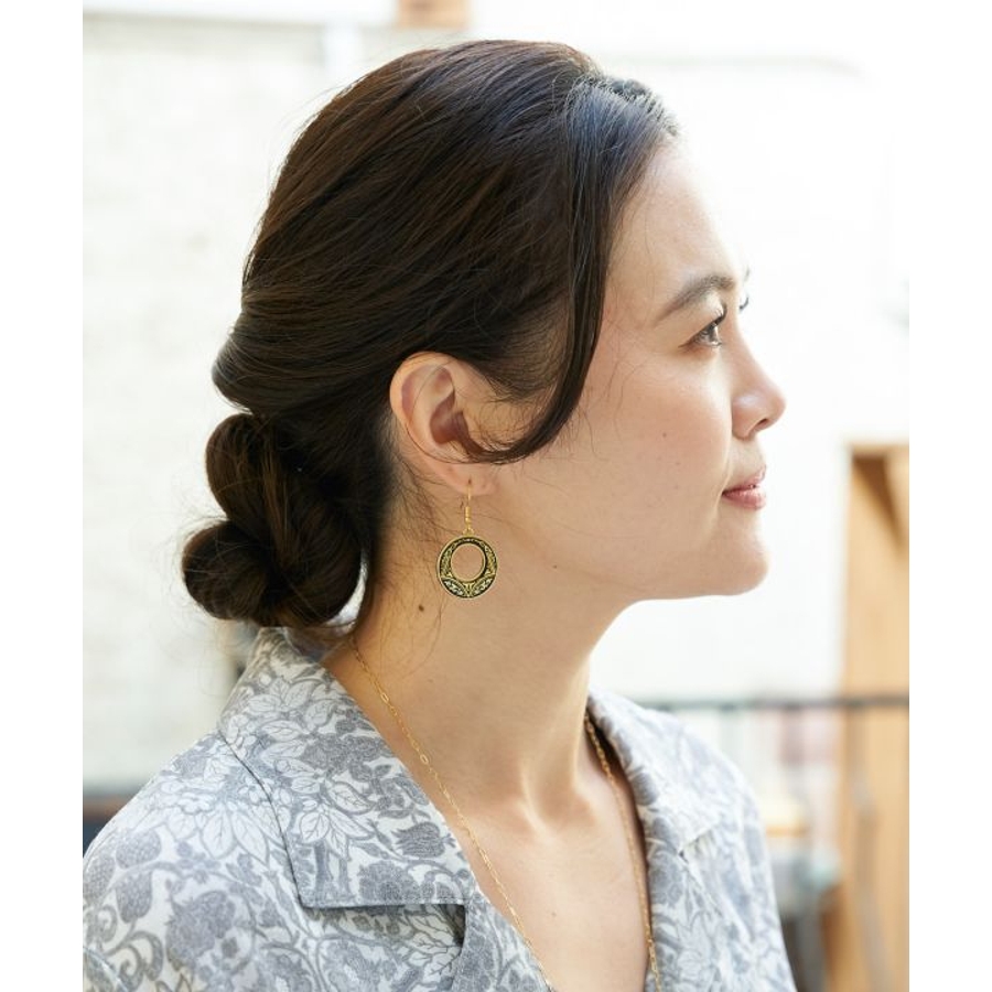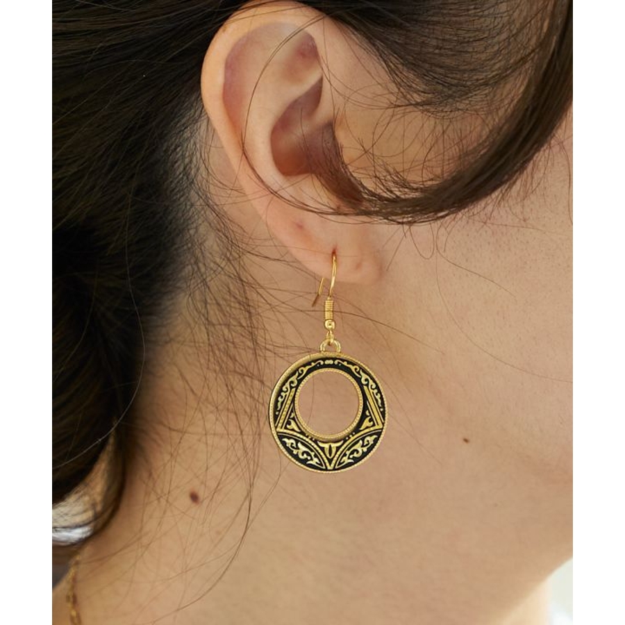 スペインとイスラム文化の融合により生まれた、スペイン・トレド地方の伝統工芸「ダマスキナード」のアクセサリーシリーズ。古く15世紀頃にはトレドの文化として根付いていたといわれています。模様には幾何学模様や草花、動物のモチーフが多くあしらわれ、その美しく繊細な技術には職人の腕と歴史を感じられます。耳元で揺れる大ぶりなデザインのピアスは、エレガントな華やかさを演出してくれます。