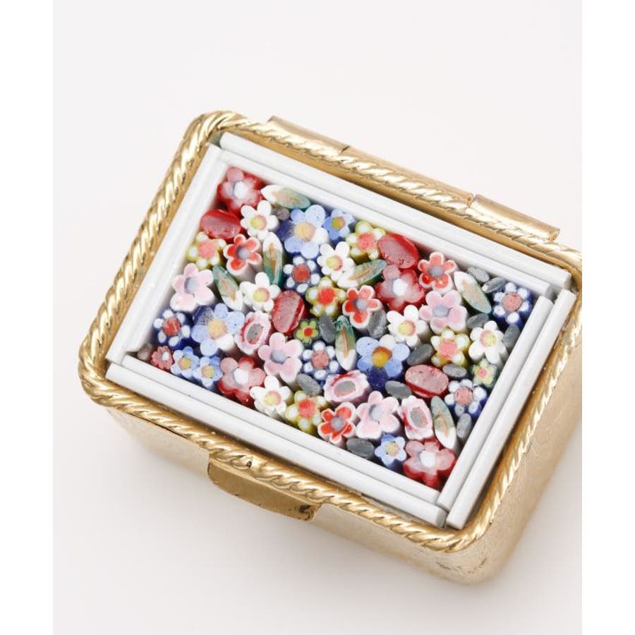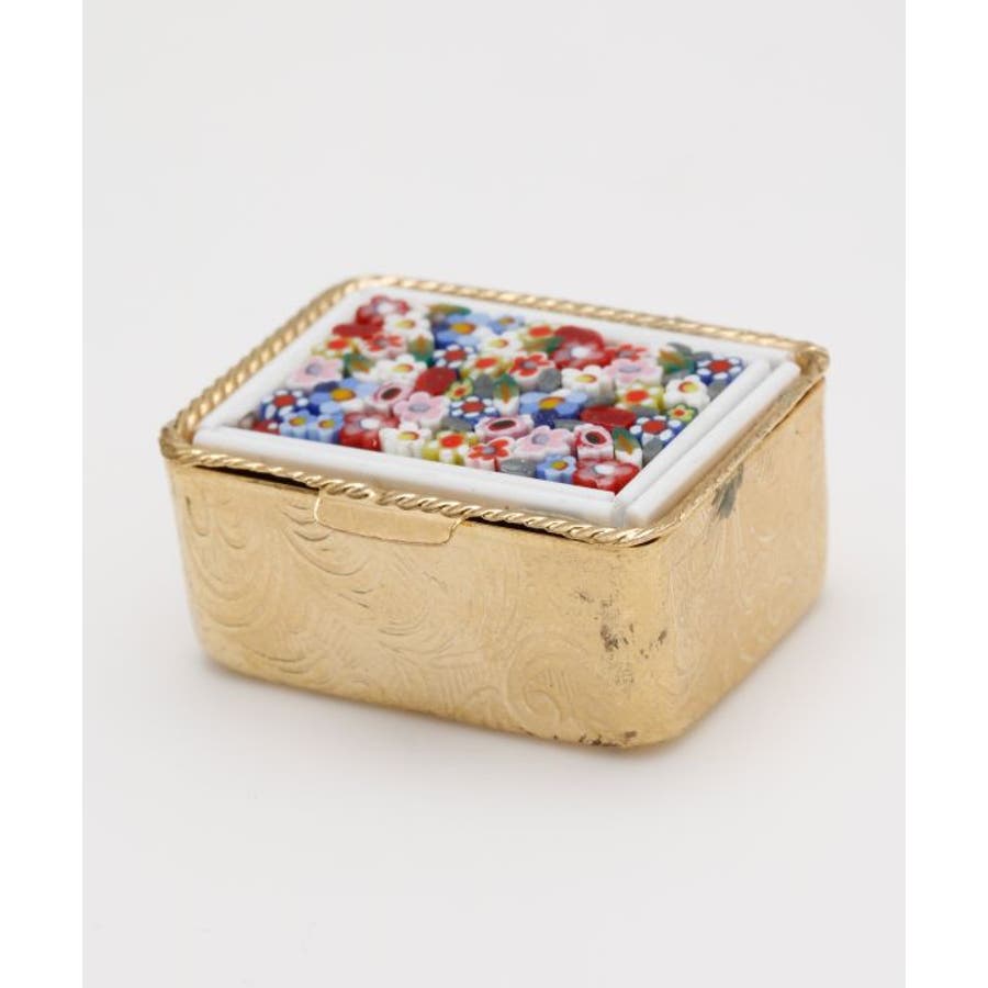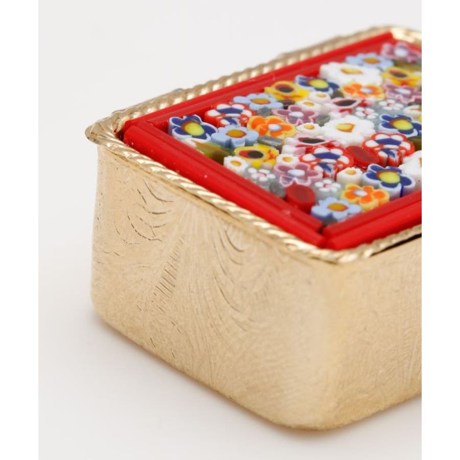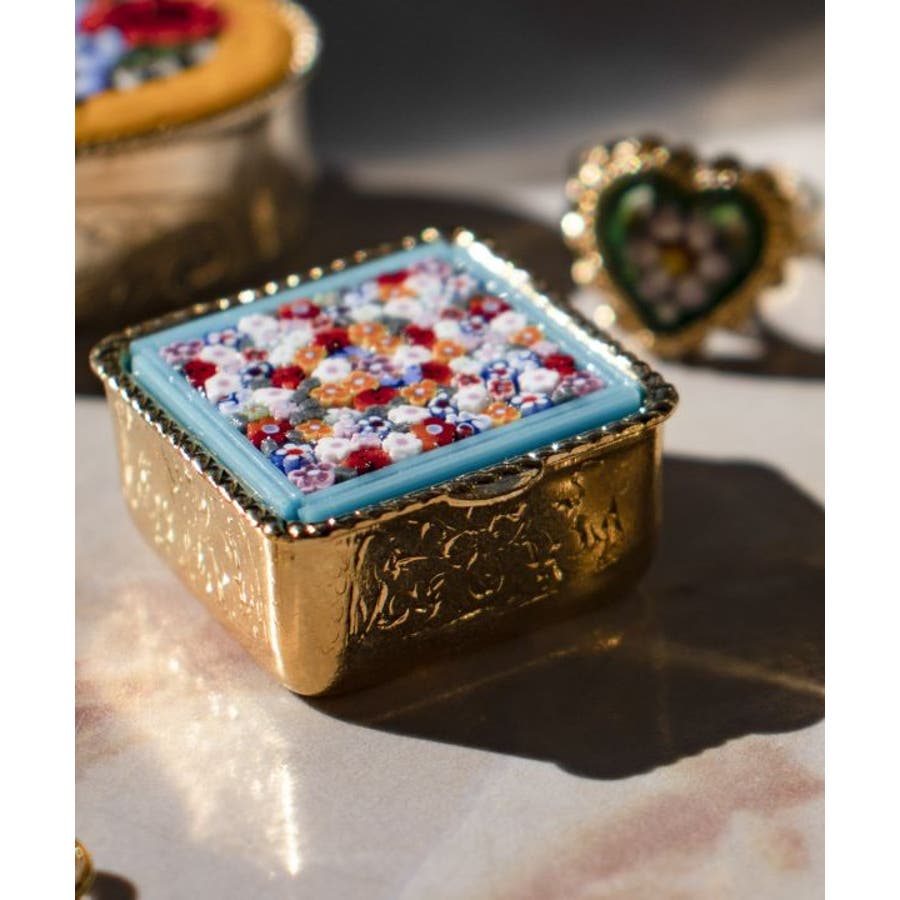 息を呑むほどに美しい、イタリア・ベネチアの伝統技法「ガラスモザイク」を贅沢にあしらったスクエア型のピルケース。1mmほどのガラスをフレームにはめ込んで、お花などの模様を表現しています。昔ながらの職人の繊細な技が光ります。ケース全体や蓋の裏側には草花の模様が施されていて高級感のある印象に。毎日使うものだから、とっておきのひとつを選んでみてはいかがでしょうか。
