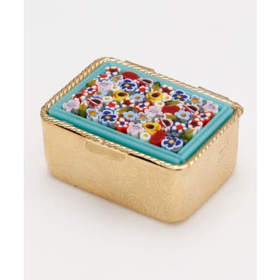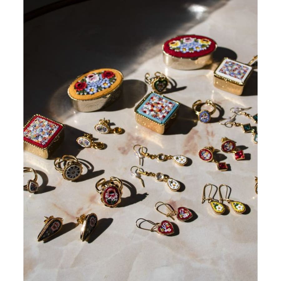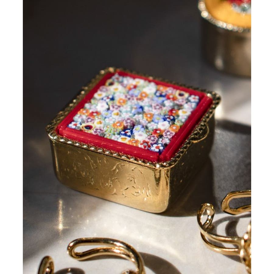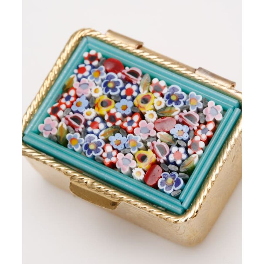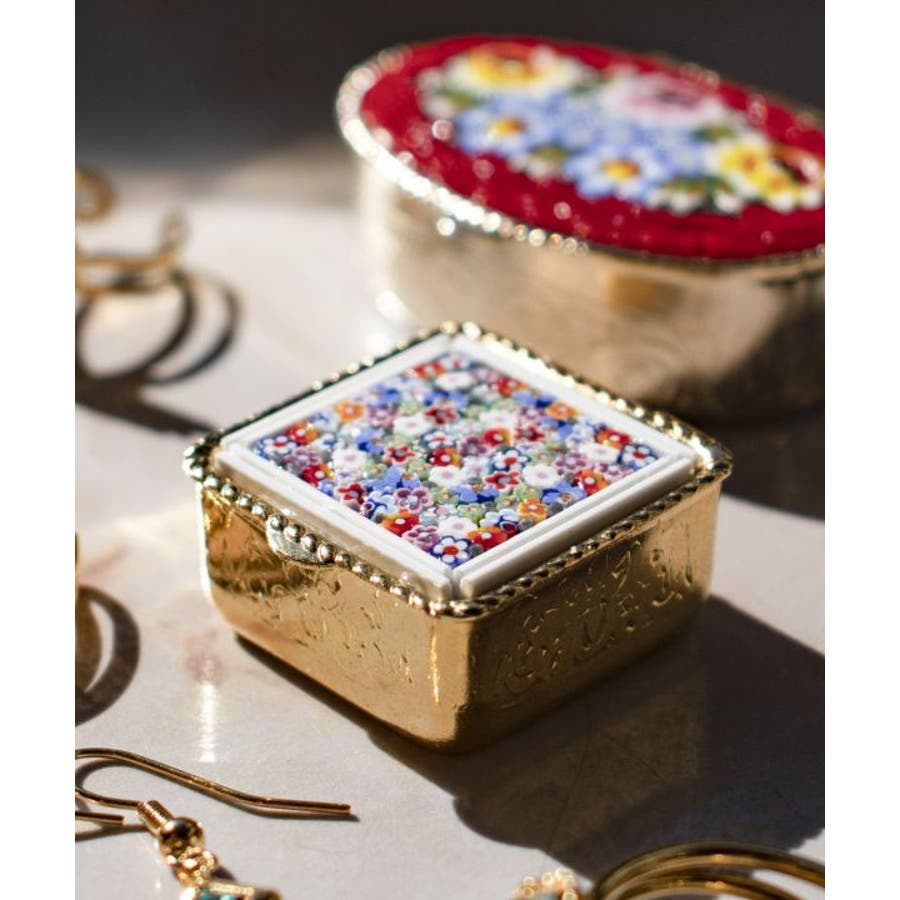 息を呑むほどに美しい、イタリア・ベネチアの伝統技法「ガラスモザイク」を贅沢にあしらったスクエア型のピルケース。1mmほどのガラスをフレームにはめ込んで、お花などの模様を表現しています。昔ながらの職人の繊細な技が光ります。ケース全体や蓋の裏側には草花の模様が施されていて高級感のある印象に。毎日使うものだから、とっておきのひとつを選んでみてはいかがでしょうか。