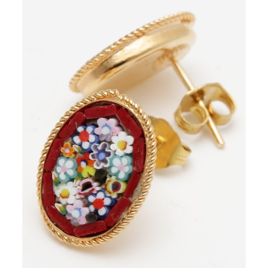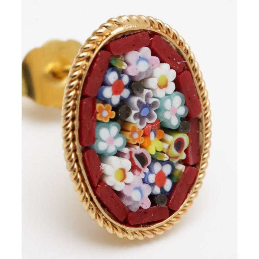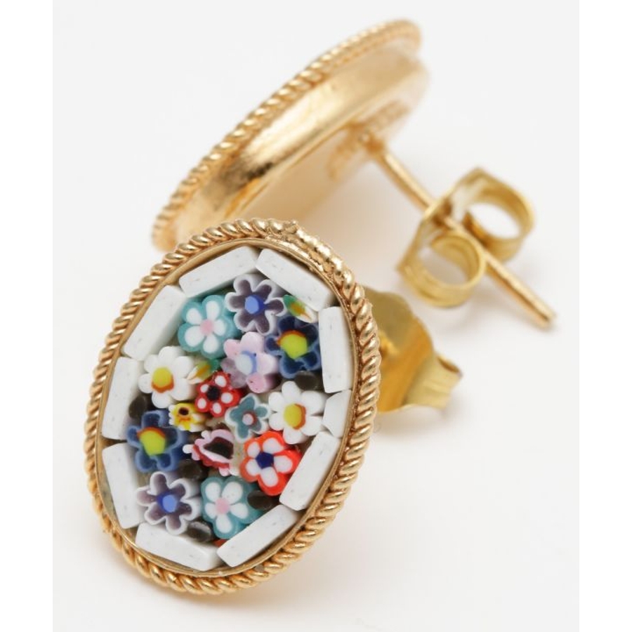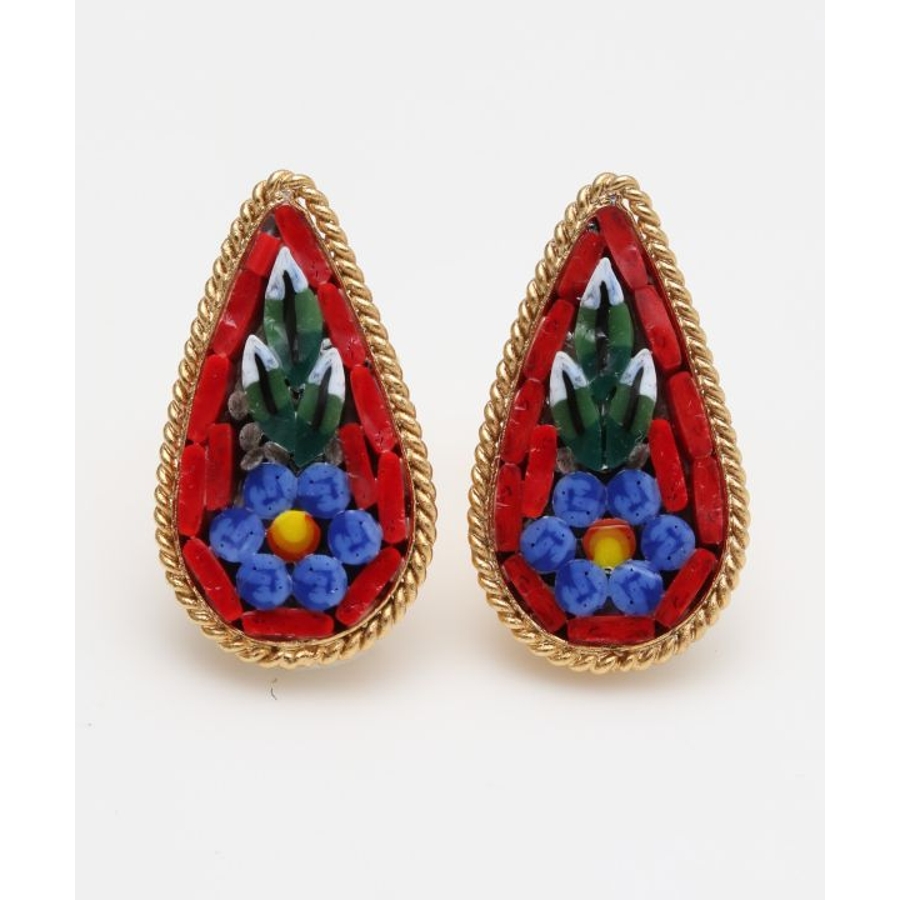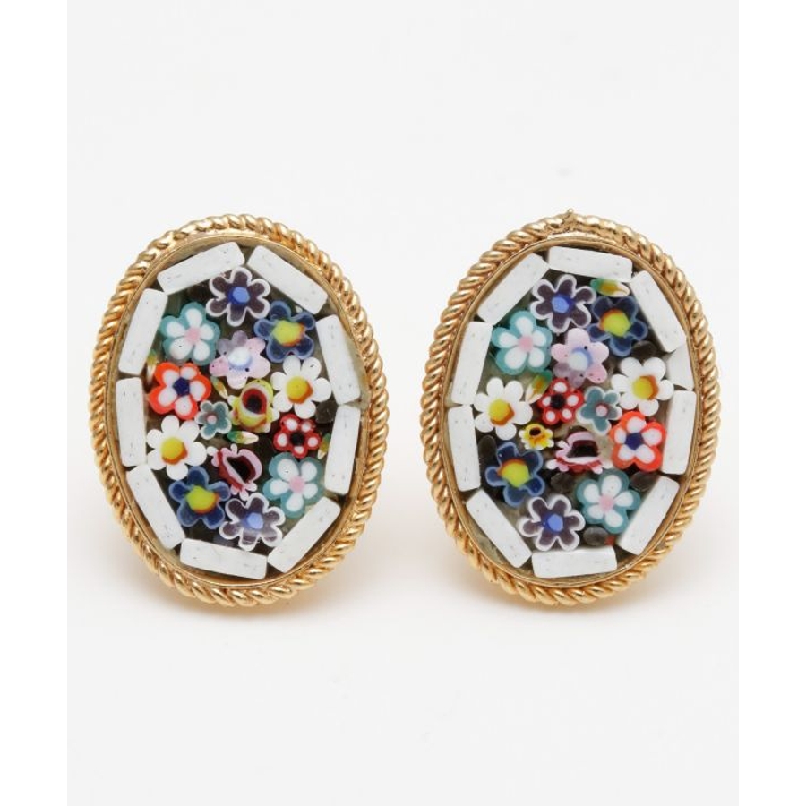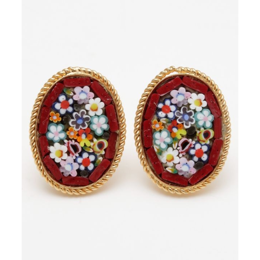 イタリア・フィレンツェの伝統技法「ガラスモザイク」で作られた、ポストタイプのピアス。1mmほどのベネチアンガラス(ムラーノガラス)をフレームにはめ込んで、お花などの模様を表現しています。昔ながらの職人の繊細な技が光ります。身に着けてちょっと嬉しくなるアイテムです。