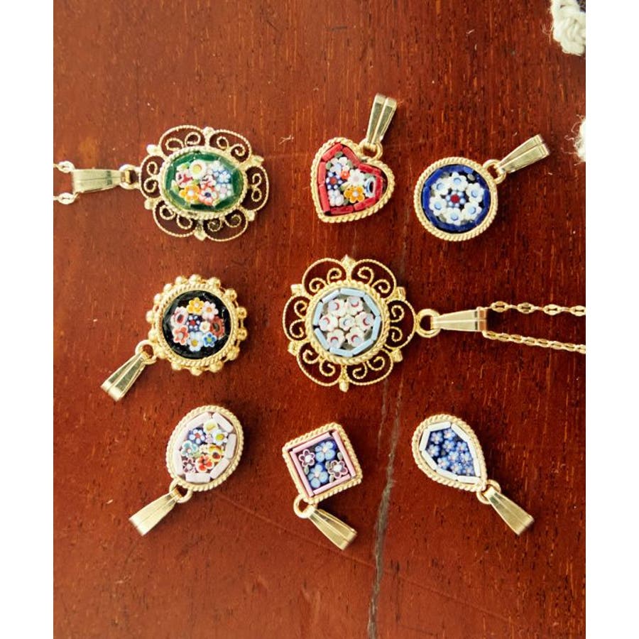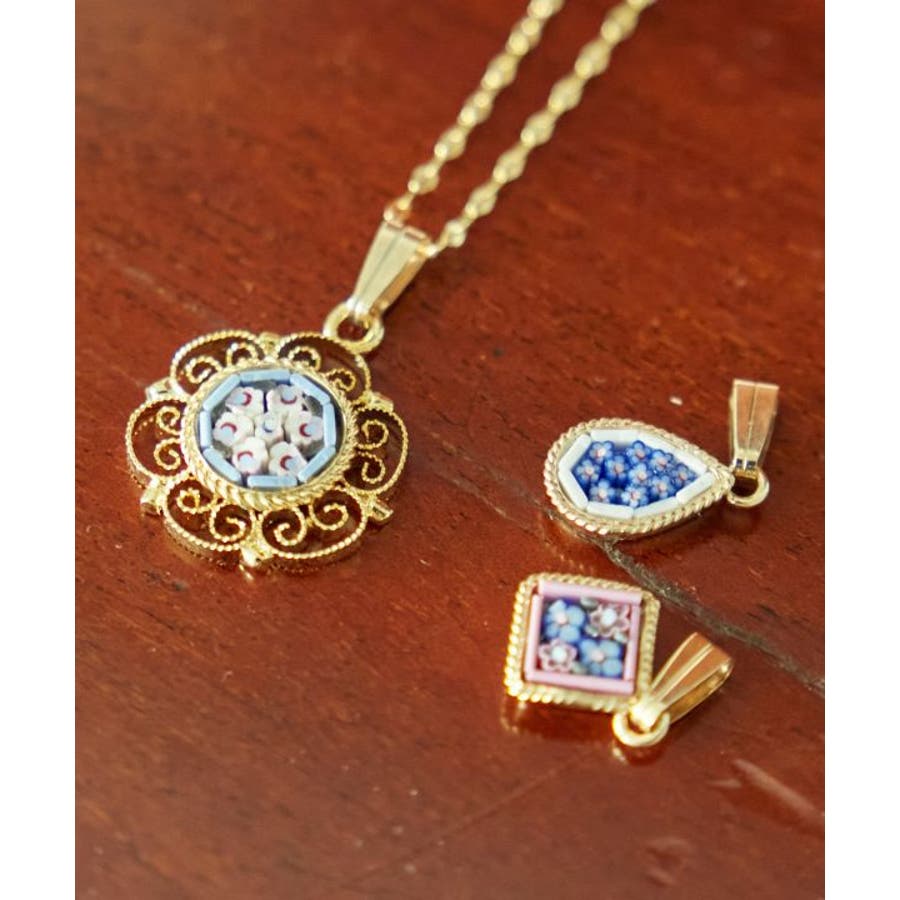 イタリア・フィレンツェの伝統技法「ガラスモザイク」で作られたペンダントトップ。1mmほどのベネチアンガラス(ムラーノガラス)をフレームにはめ込んで、お花などの模様を表現。昔ながらの職人の繊細な技が光ります。お好みのチェーンと組み合わせてネックレスやブレスレットに。手作りの為ひとつひとつ異なり、唯一無二の魅力を放ちます。身に着けてちょっと嬉しくなる、ハンドワークのぬくもり溢れるアイテムです。
