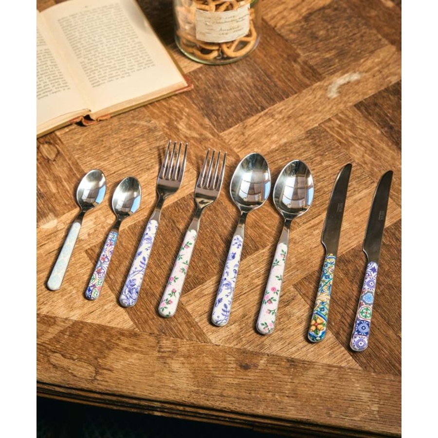イタリアの高品質なカトラリーブランド「NEVA」のディナーフォーク。花柄やタイル柄など選ぶのが楽しくなります。お肉や野菜、パスタなどを食べるときに大活躍。ディナースプーンやナイフと合わせてプレゼントにもおすすめです。
