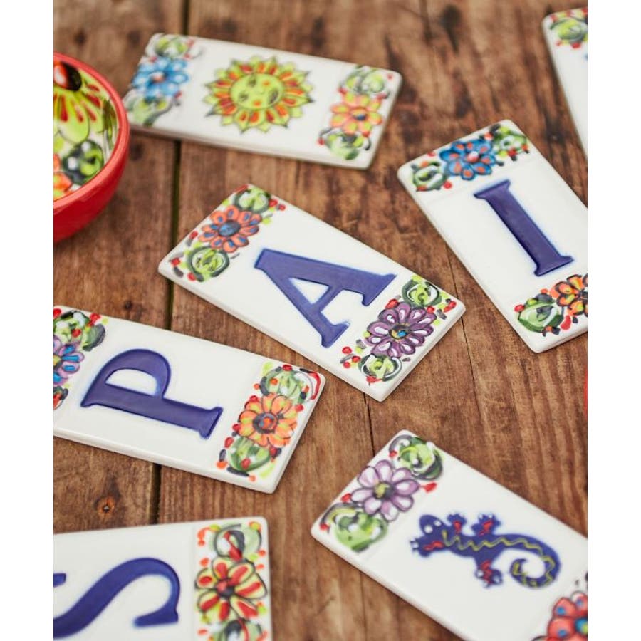 日本初上陸となる、スペインの歴史ある工房「IVANROS(イバンロス)社」のアルファベットタイル。自由に組み合わせて表札などにお使いいただけます。豊かな土壌とそこで取れる粘土、照りつける太陽、アンダルシアの感性、熟練の職人たち、ひとつひとつのハンドペイント。これらがおりなす、唯一無二の素敵なモノ。