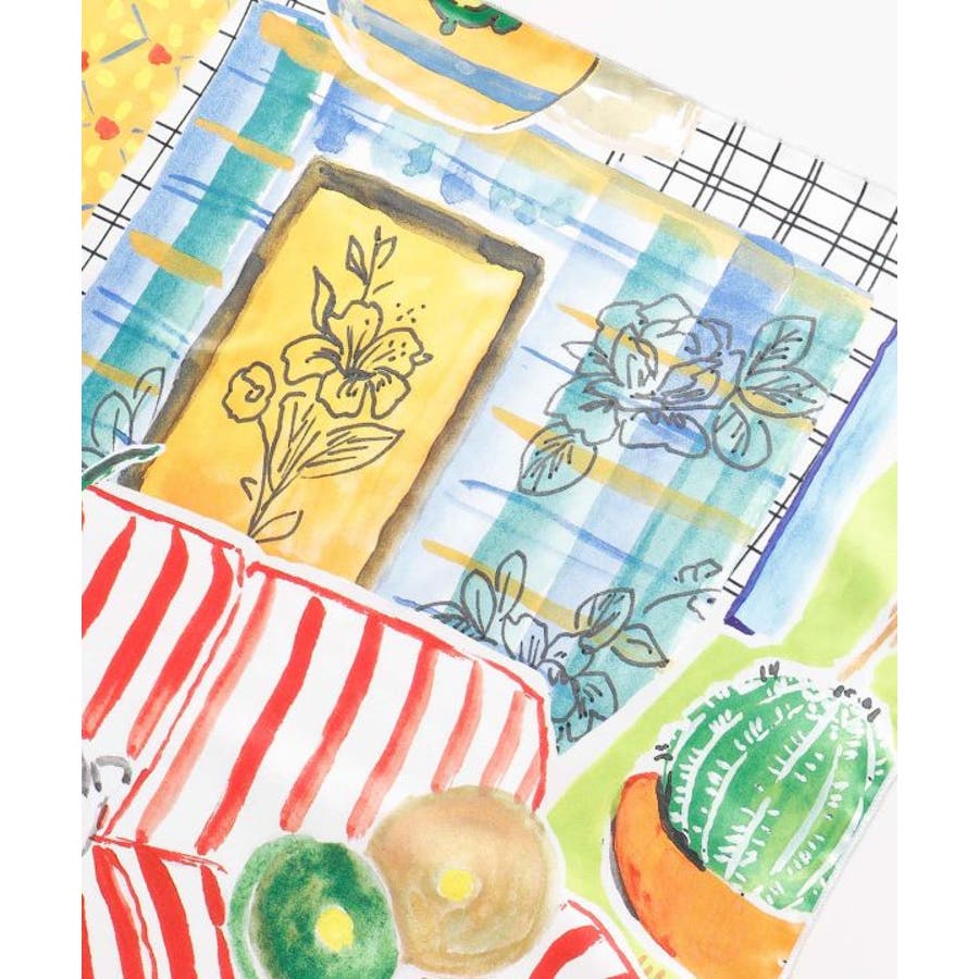 フランスのアルザス地方ミュルーズより仕入れたスカーフは、鮮やかな色彩と軽やかな素材感が魅力。58cm角の扱いやすいサイズで、贈り物にもぴったりの一枚です。