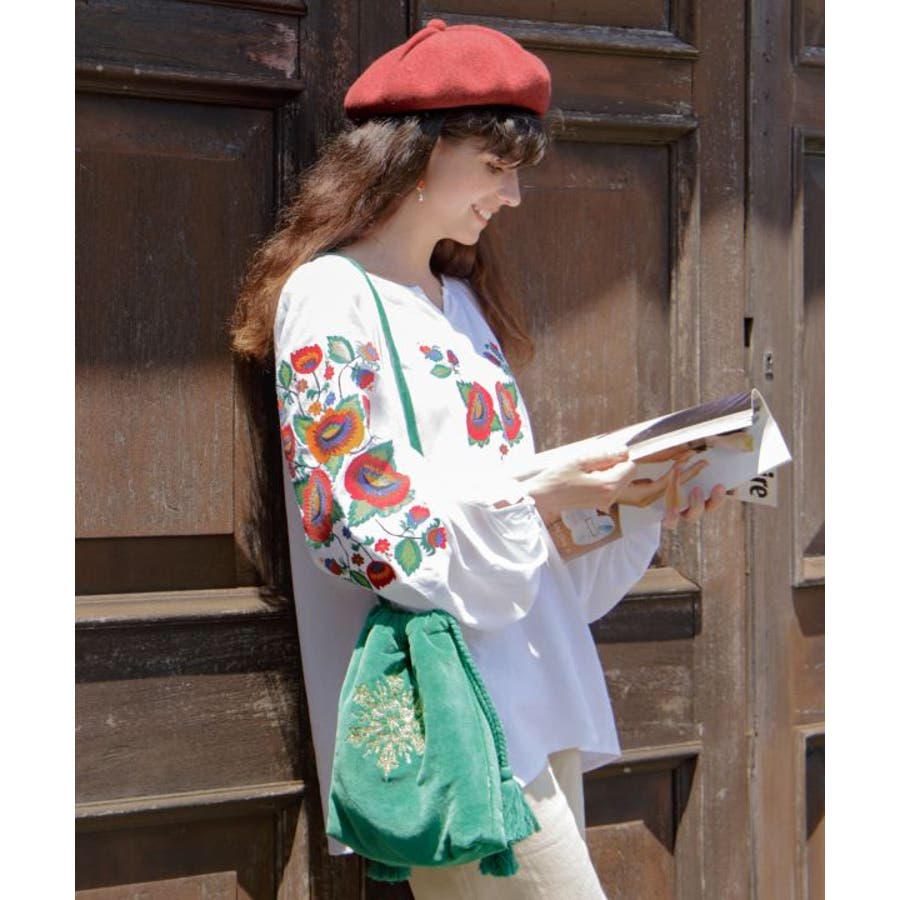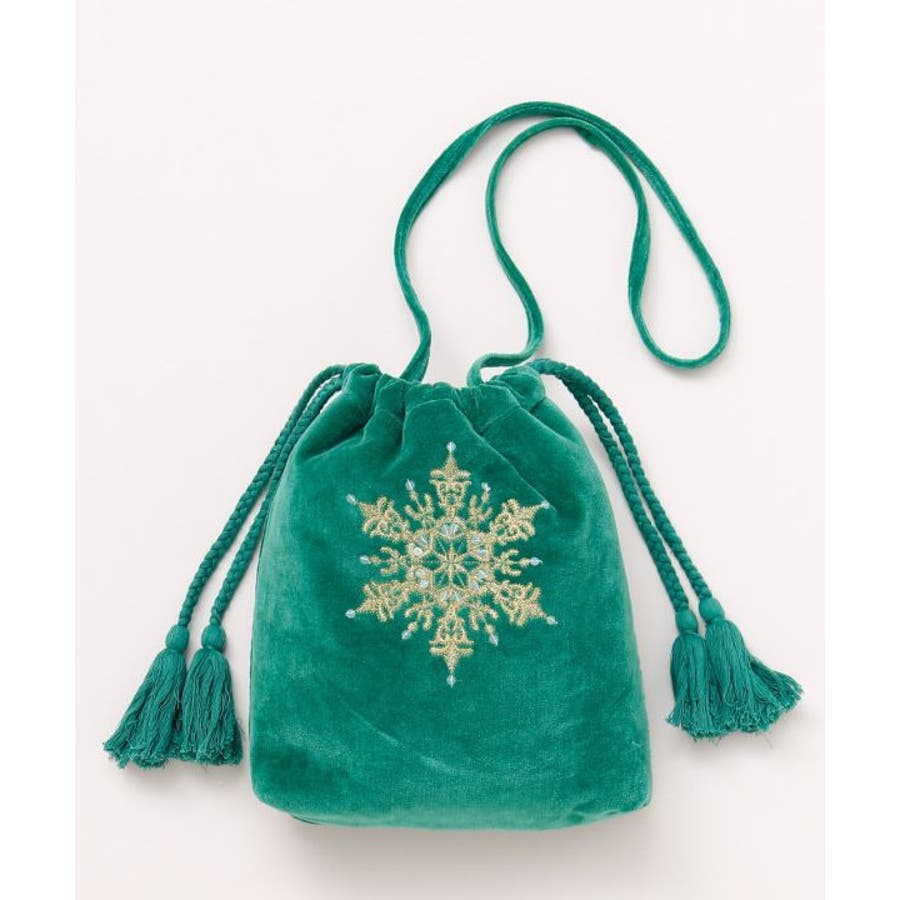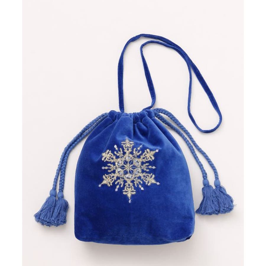 ふわふわしたヴィンテージ感のあるベルベット生地に雪の結晶をイメージとした刺繍がキラキラとしてかわいらしいショルダーバッグです。