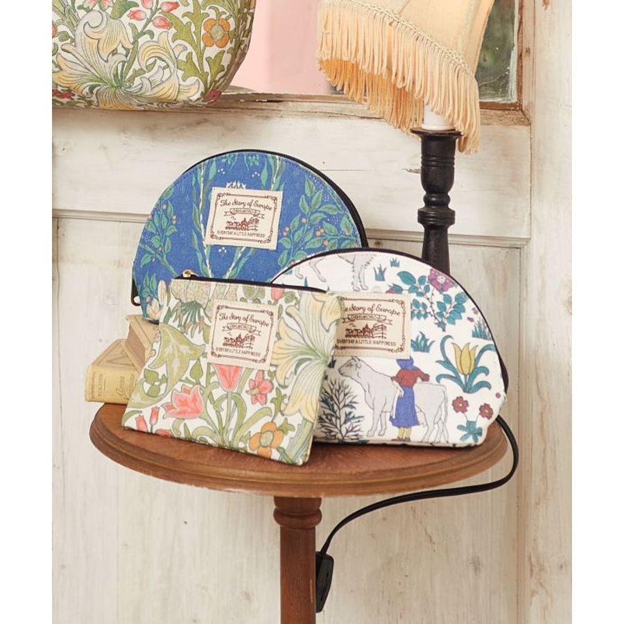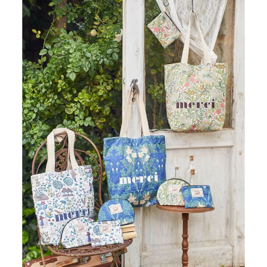 ヨーロッパのボタニカル柄を使用したトートバッグ。ヴィンテージ感のある風合いが素敵です。自然に配慮したオーガニックコットンを使用。化粧ポーチとしても使える大きな間口の便利なサイズ。マチがあり、内ポケット付きです。