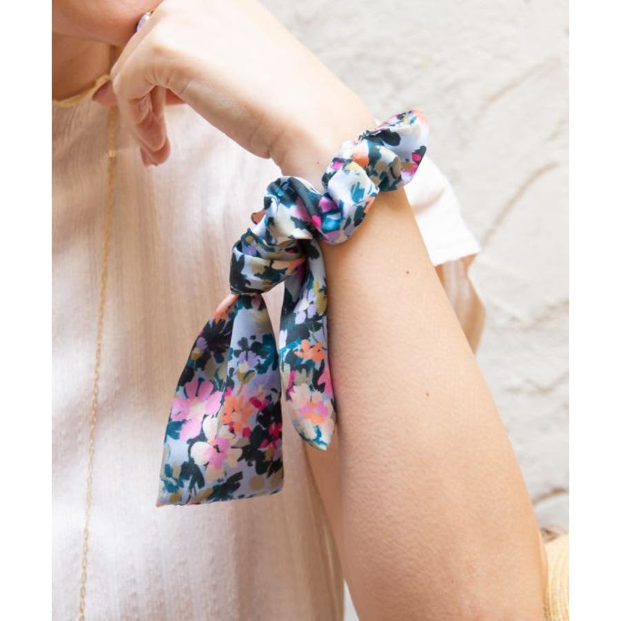 さらっとなめらかな生地感のイタリア製スカーフで作られたシュシュ。腕に着けてもかわいく、手首を締め付けないサイズ感。モダンな柄がヘアアレンジを華やかにしてくれます。