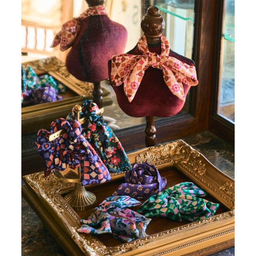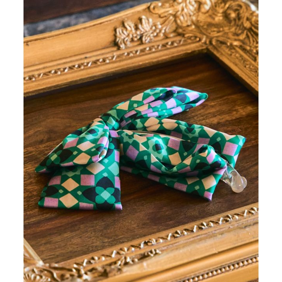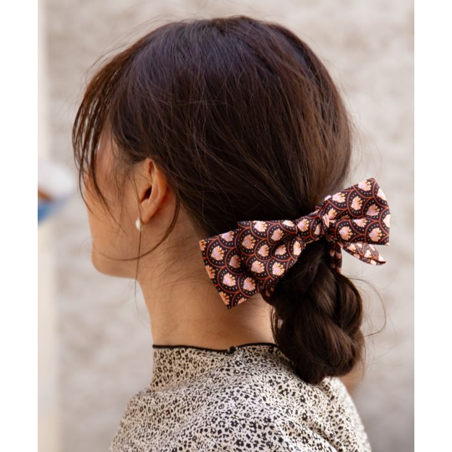 さらっとなめらかな生地感のイタリア製スカーフで作られたヘアクリップ。存在感のあるモダンなリボンがヘアアレンジを華やかにしてくれます。