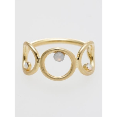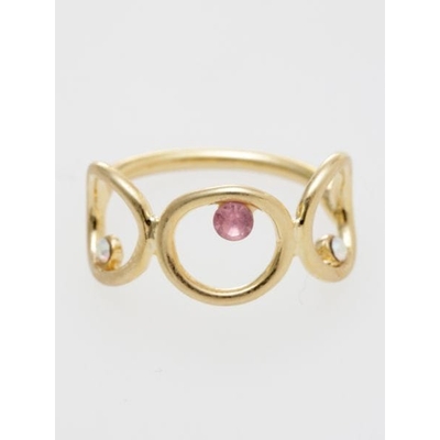 小さな丸の中にキラリと光るガラスストーン。シンプルながら存在感のあるデザイン。指元にちょっとした遊び心をプラスできるリングです。