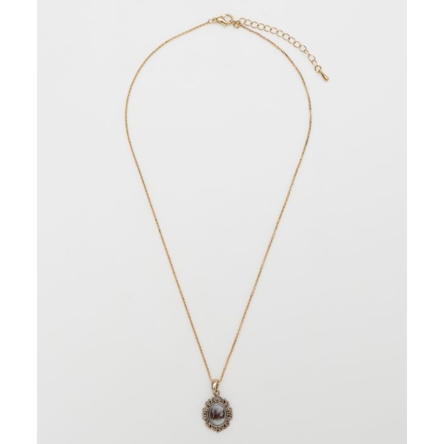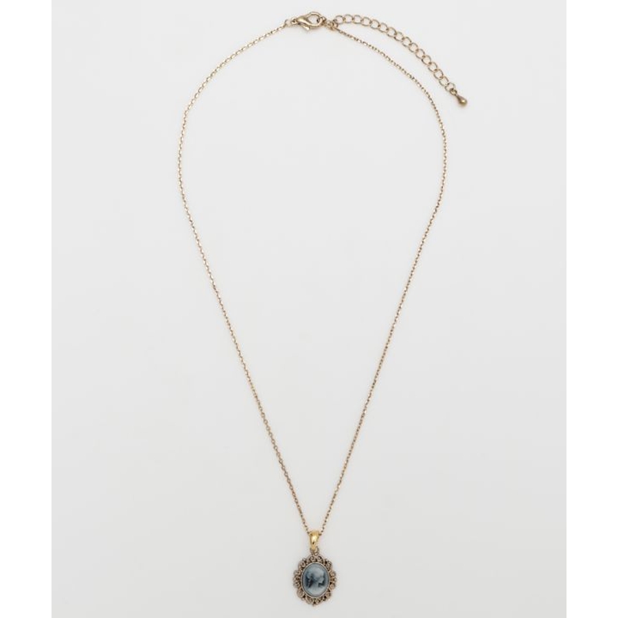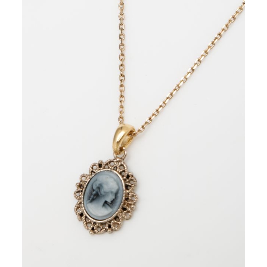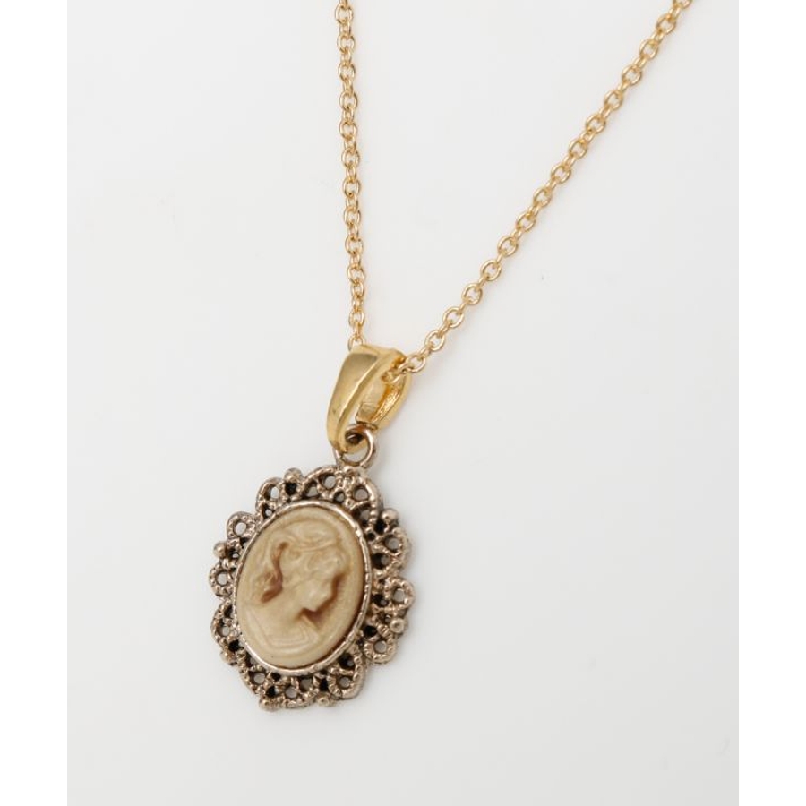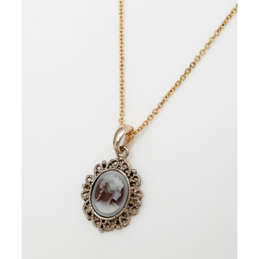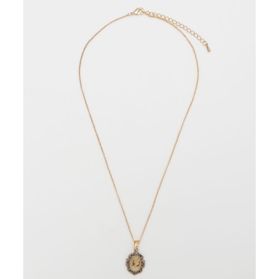 カメオモチーフのネックレス。アンティークのような風合いが魅力的。小ぶりなデザインで、コーディネートを上品でレトロな雰囲気に演出してくれます。
