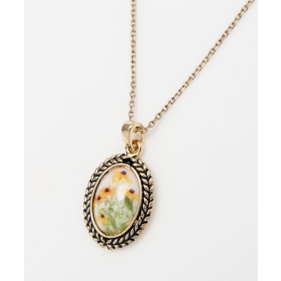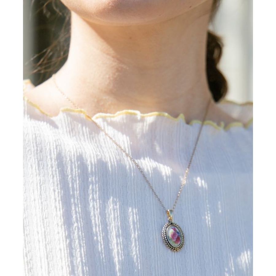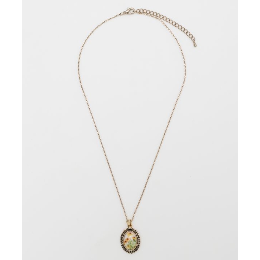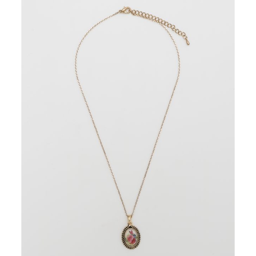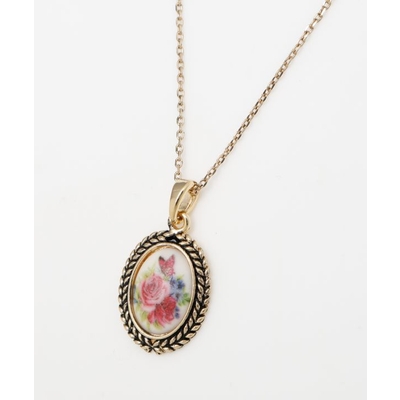 ヨーロッパの蚤の市で出会ったアンティークのような、レトロな雰囲気が楽しめるネックレスです。繊細に描かれたお花のモチーフが魅力的。コーディネートのアクセントにおすすめです。