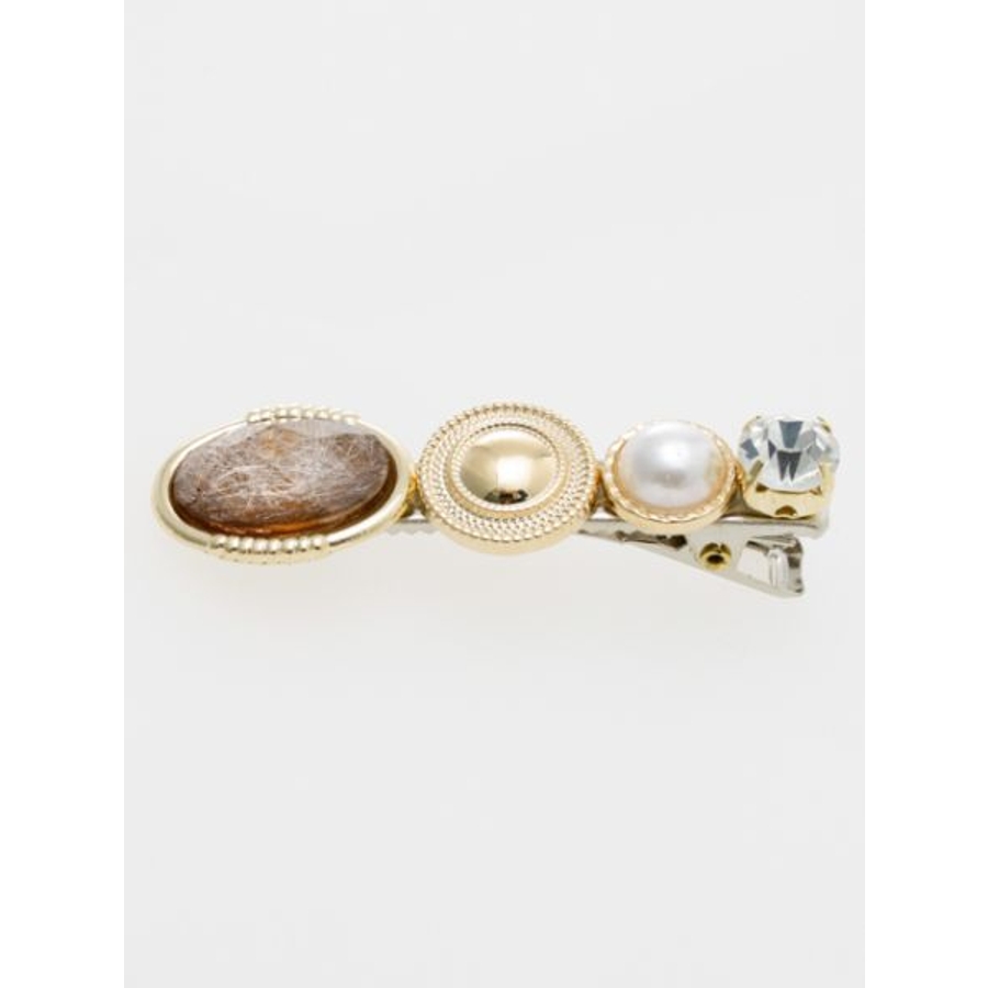 ゴールドパーツやイミテーションストーンを配したレトロ調のヘアクリップです。
