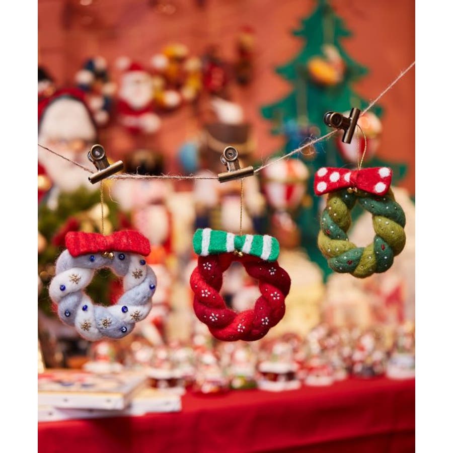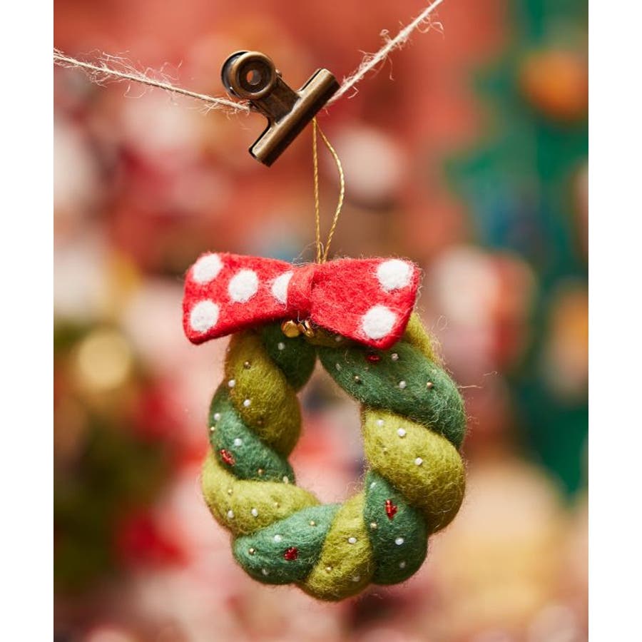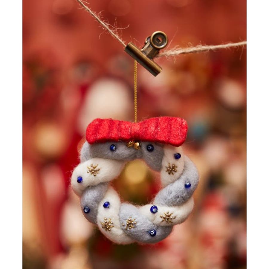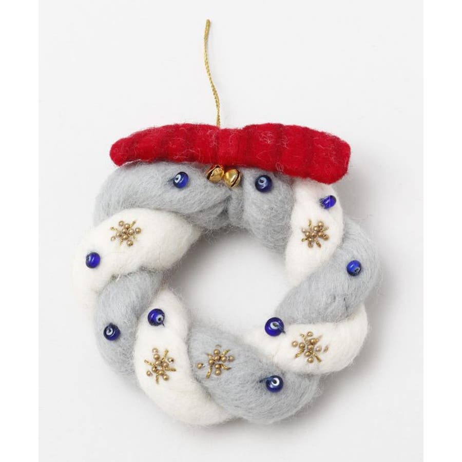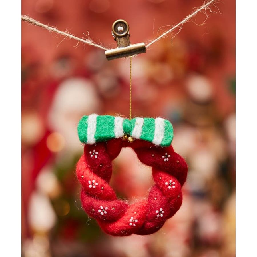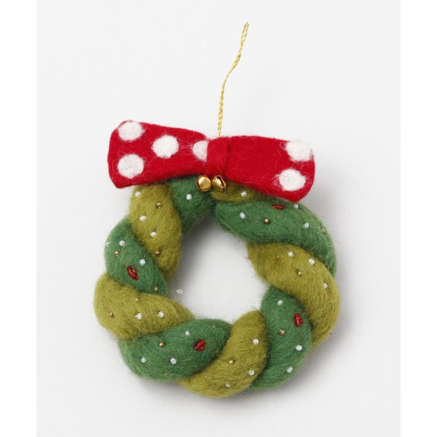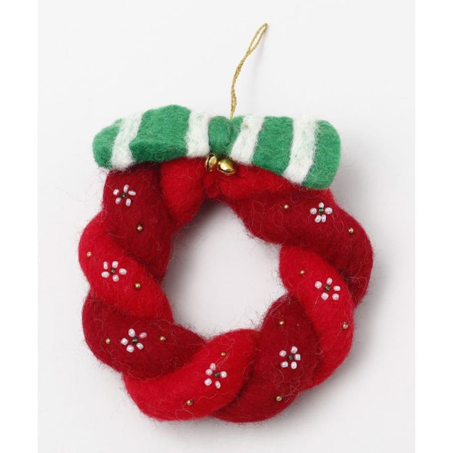 ほっこりと温かみのある羊毛フェルトとビーズワークで作られた、クリスマスリース型オーナメント。ツリーに飾るのはもちろん、お部屋のドアに掛けたり、ちょっとした空間をクリスマスムードに彩ります。※一点一点手作りのため、サイズやモチーフに個体差がございます。