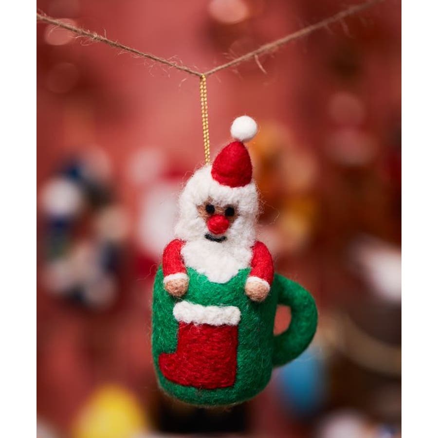 マグカップに入ったりクッキーをかじったりする姿がユニークなサンタクロースのオーナメント。あたたかみのある羊毛フェルト素材。ツリーに飾るのはもちろん、お部屋のドアに掛けたり、ちょっとした空間をクリスマスムードに彩ります。※一点一点手作りのため、サイズやモチーフに個体差がございます。