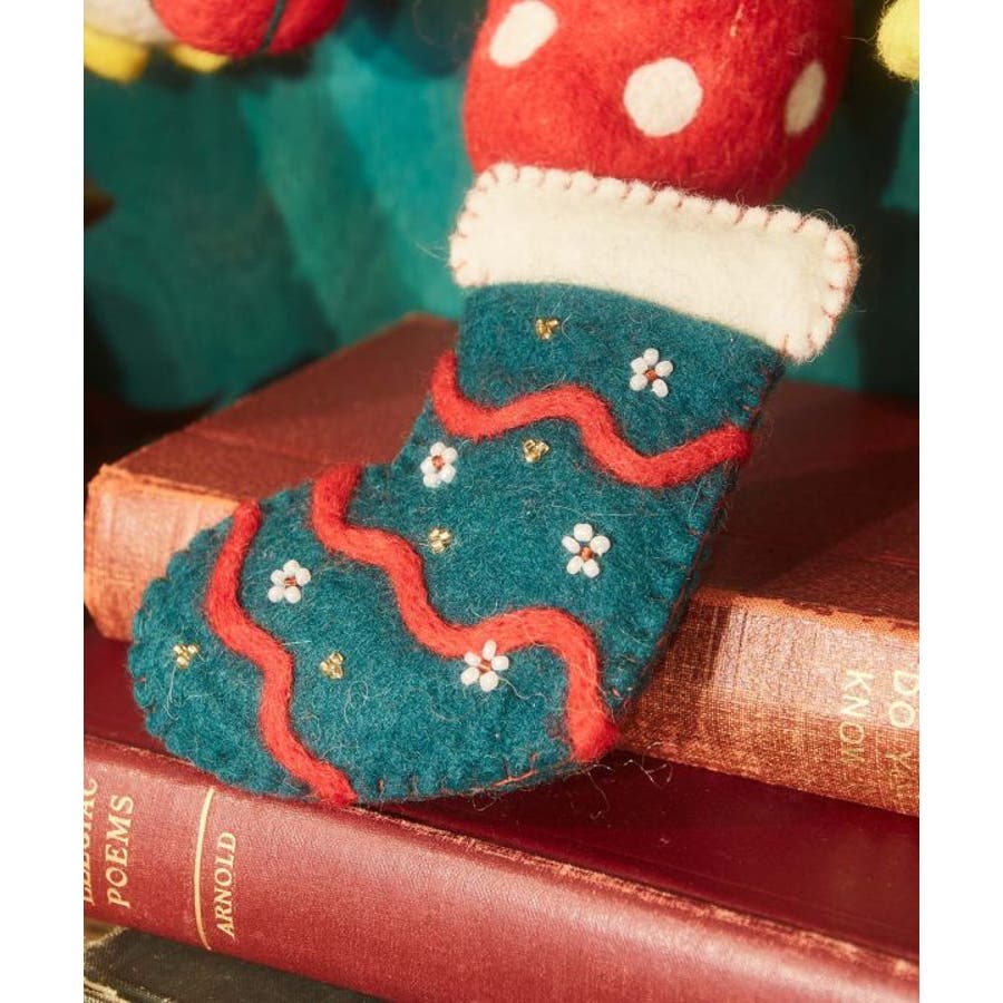 ほっこりと温かみのある羊毛フェルトに、キラキラのビーズを施したクリスマスオーナメント。キラキラと光るビーズがお部屋を彩ります。※一点一点手作りのため、サイズや柄の出方に個体差がございます。