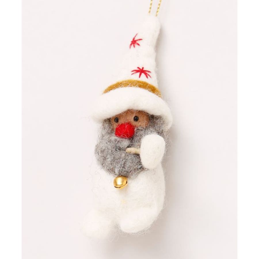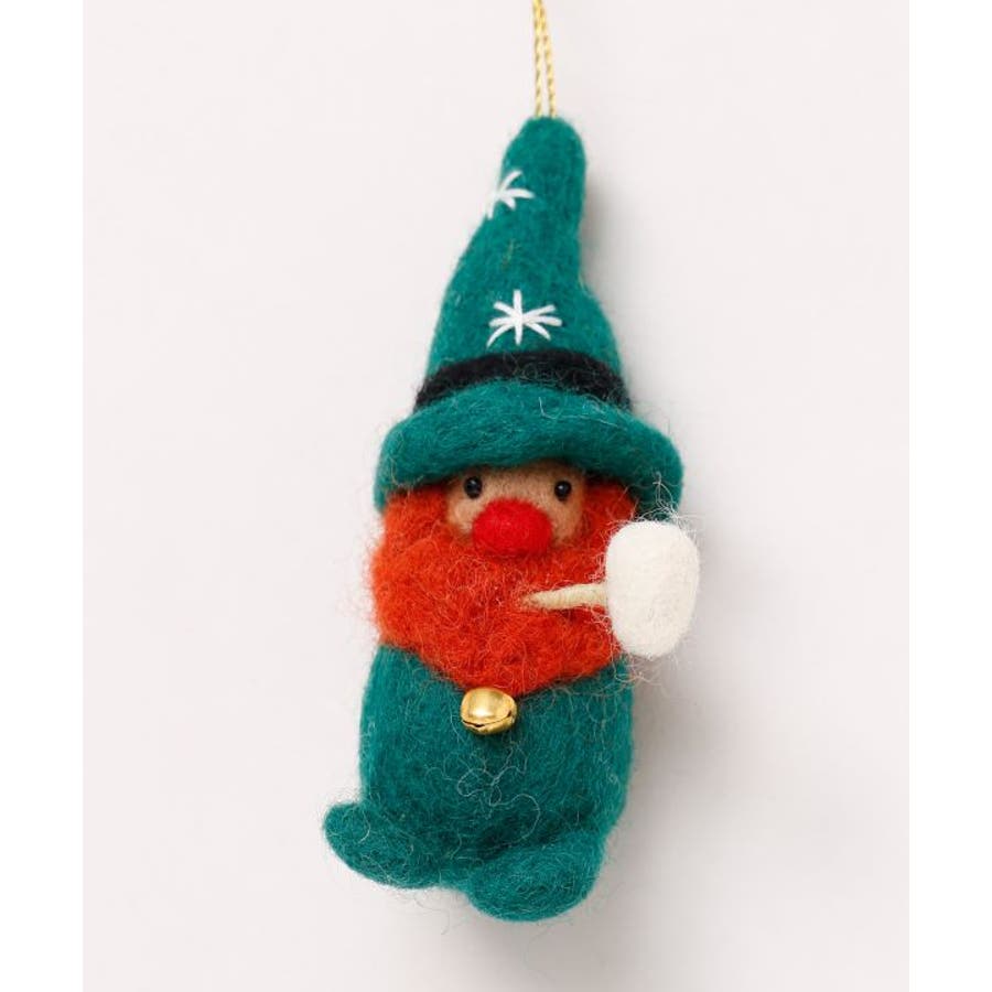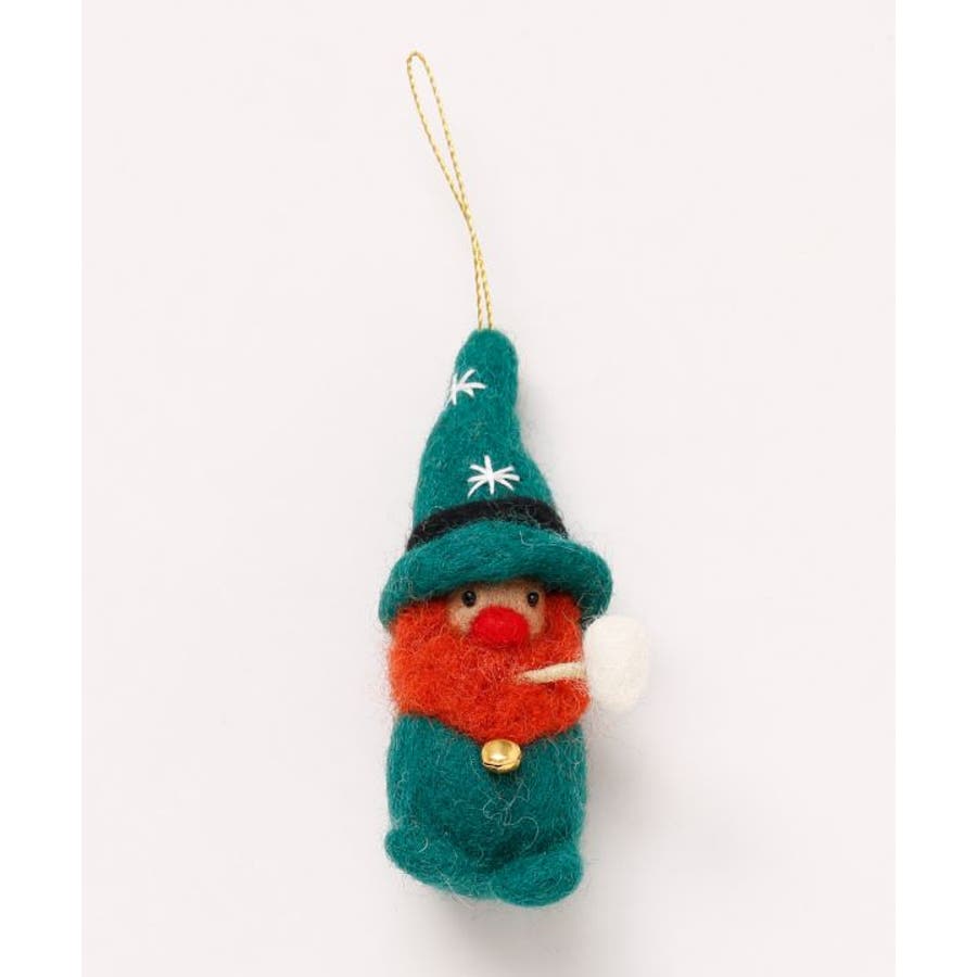 北欧フィンランドに古くから伝わる妖精「トントゥ」のフェルトオーナメント。 パイプをくわえた渋いトントゥ。※一点一点手作りのため、サイズや柄の出方に個体差がございます。