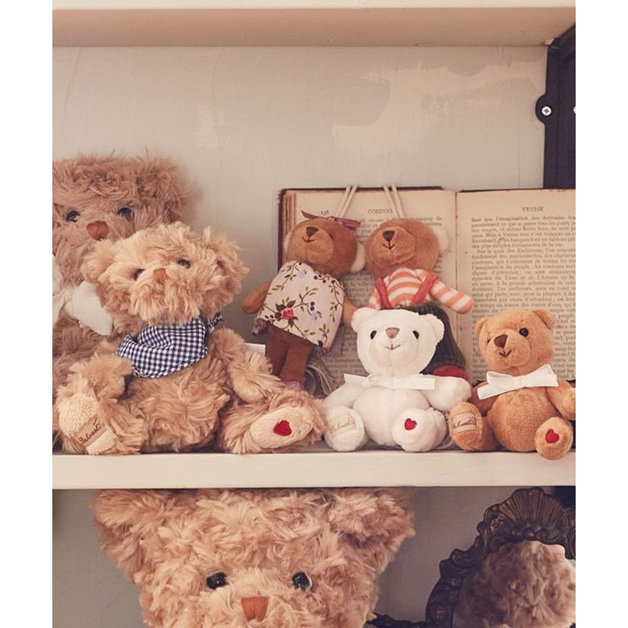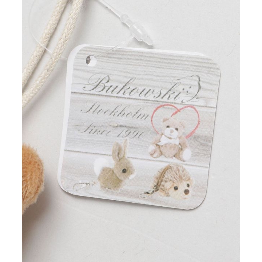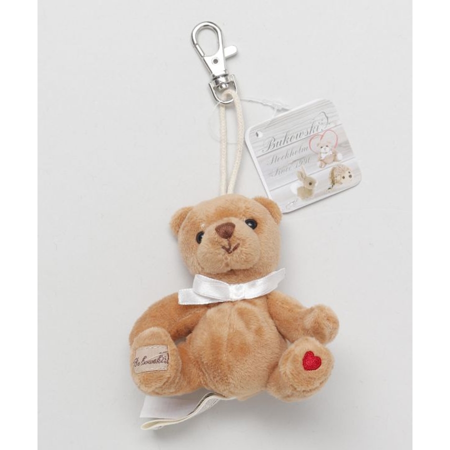 スウェーデン・ストックホルムのBukowski(ブコウスキー)社のテディベア。手のひらサイズの可愛らしいベアといつでも一緒。足の上にはハートマークも。キーホルダーがついているので、ちょっとしたお出かけや旅行のお供にも。