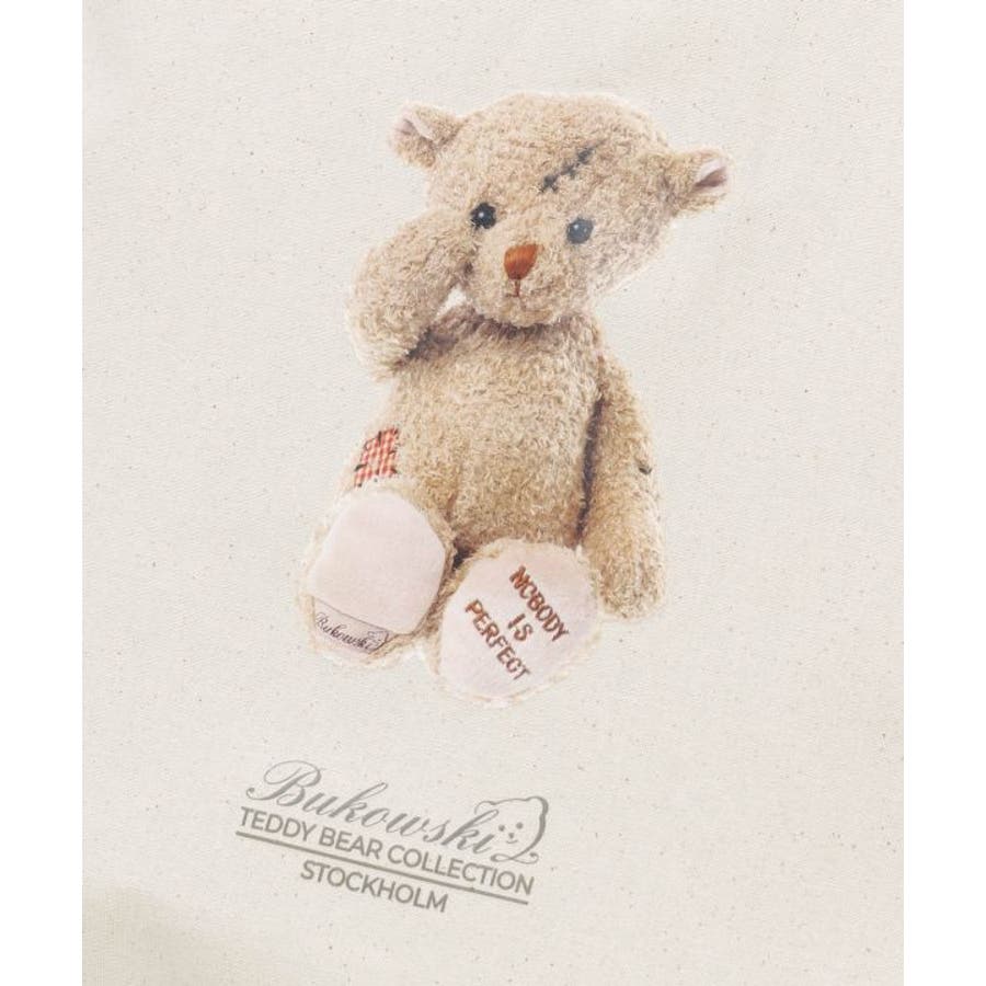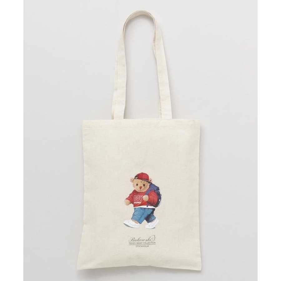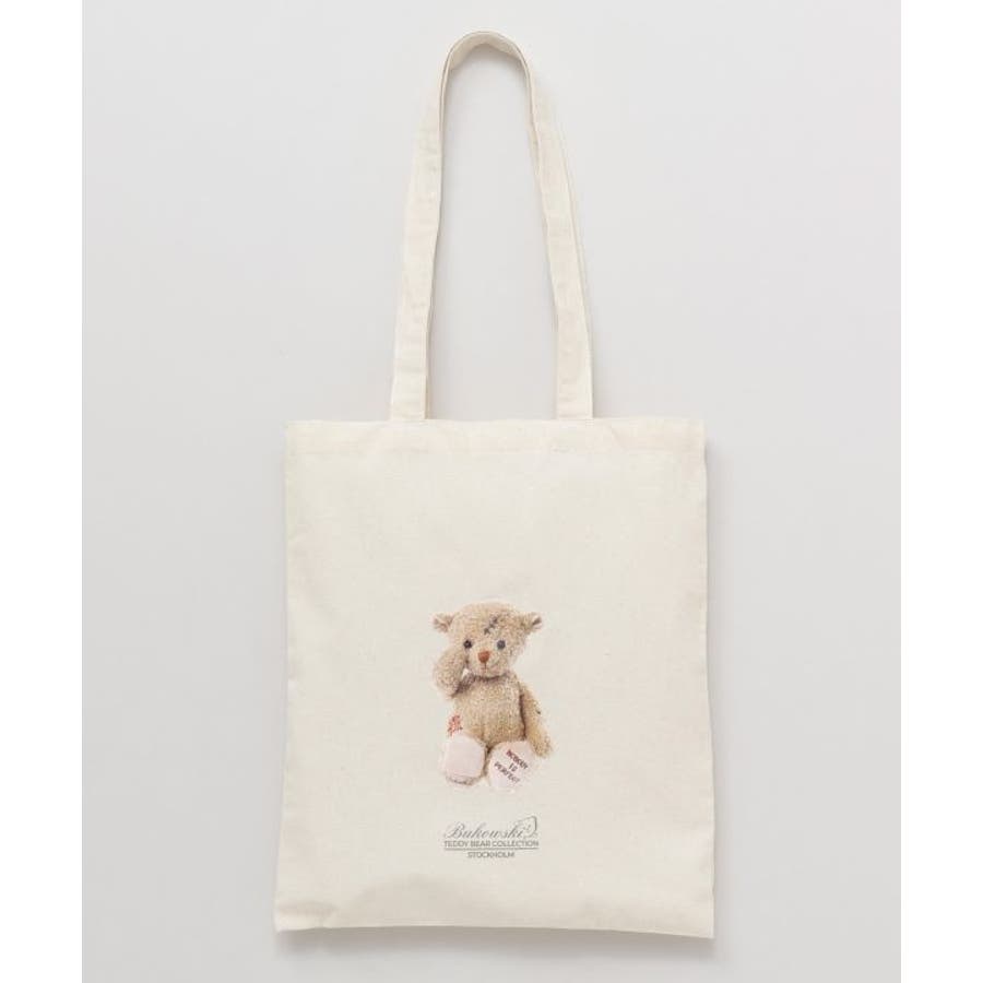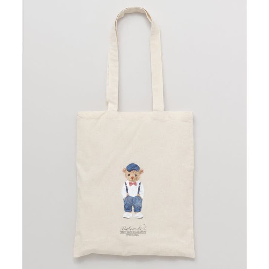 スウェーデンのぬいぐるみブランド「ブコウスキー社」のクラフトベアをプリントしたトートバッグ。A4サイズが入る使いやすいデザイン。