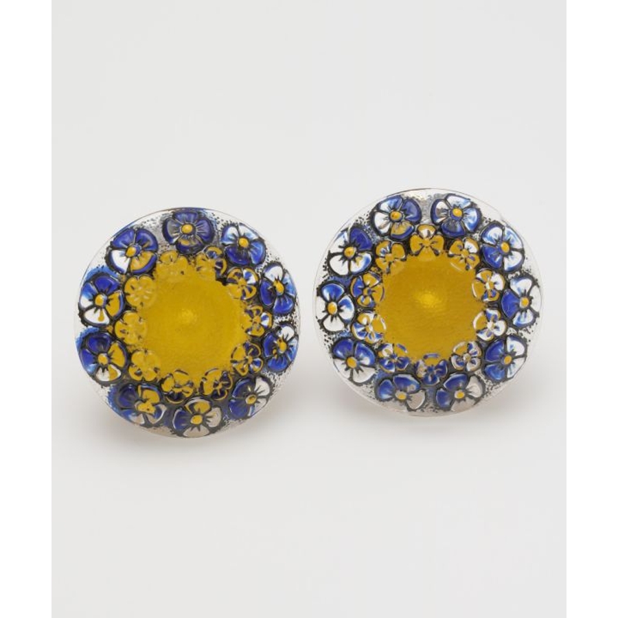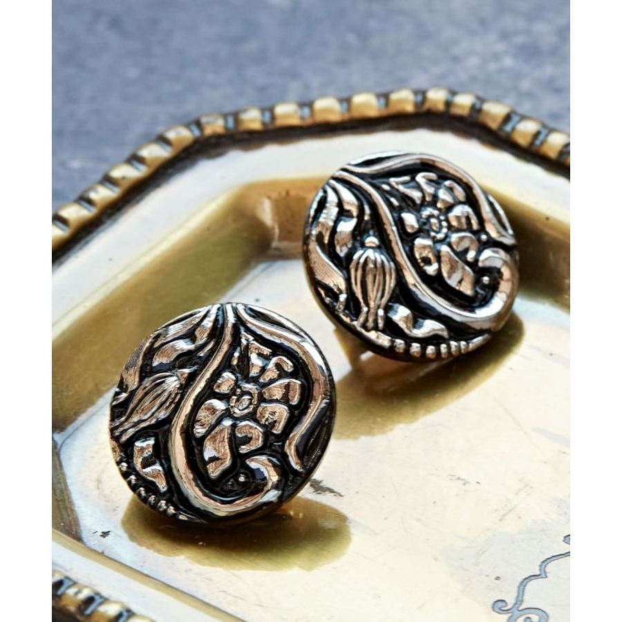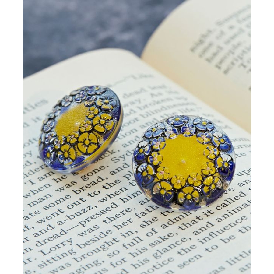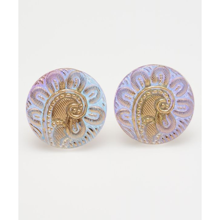 色とりどりの繊細なデザインが愛らしいチェコ・ボヘミア地方のガラスボタン。現地の工房では昔ながらの手作業でひとつひとつ丁寧につくられています。そんな魅力あふれるガラスボタンを現地から直接仕入れ、素敵なイヤリングに仕立てました。レトロな雰囲気が印象的。ひとつひとつ微妙な違いがあり、手作りならではの味わいをお楽しみいただけます。大きめサイズでコーディネートのアクセントに。