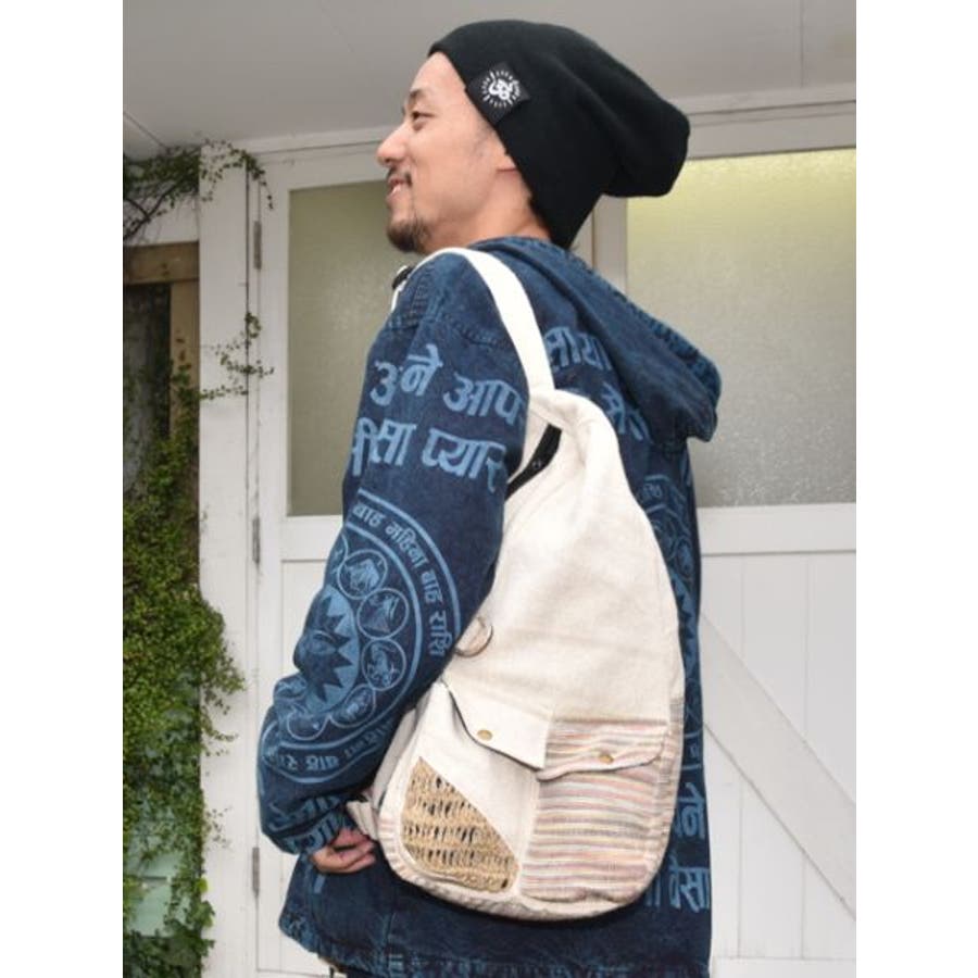 ネパールの織り生地を使ったワンショルダーバッグ。デイリーユースはもちろん、旅行やフェスなどのレジャーにも使いやすいサイズ感です。ヘンプの編地や水牛の角を加工したパーツなどクラフト感をたっぷり詰め込んだこだわりのデザイン。男女兼用・ユニセックスでお使いいただけます◇◆