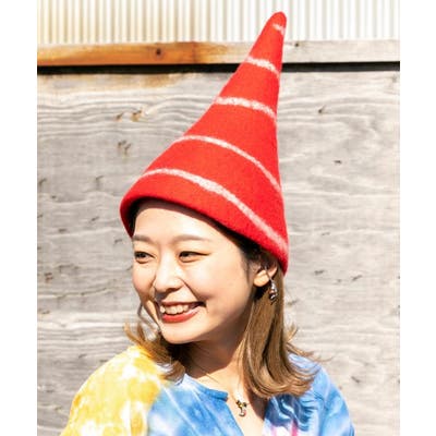 人気のサウナハット。ウール100%のフェルトハットはサウナの熱さ髪の乾燥をほどよく守る。手作業で作られている。ネームラベル部分はループかわりに提げる時に便利。フィンランドサウナの妖精トントゥの帽子をイメージしたハットでフェスでも盛り上がろう。