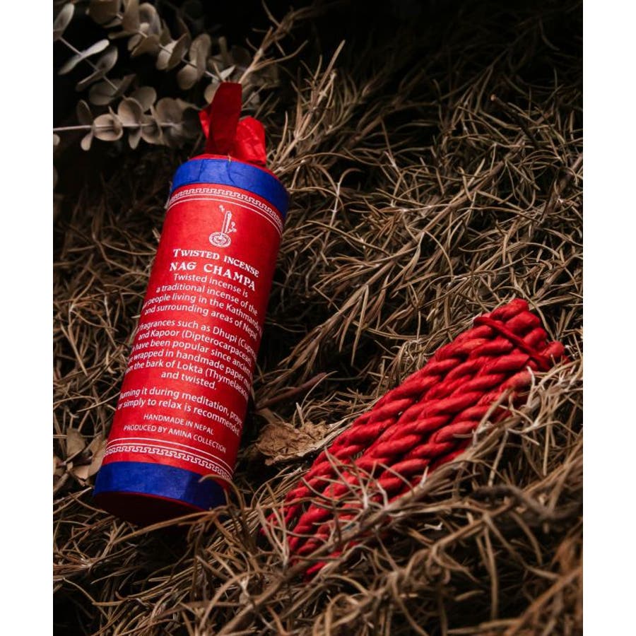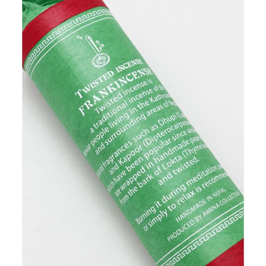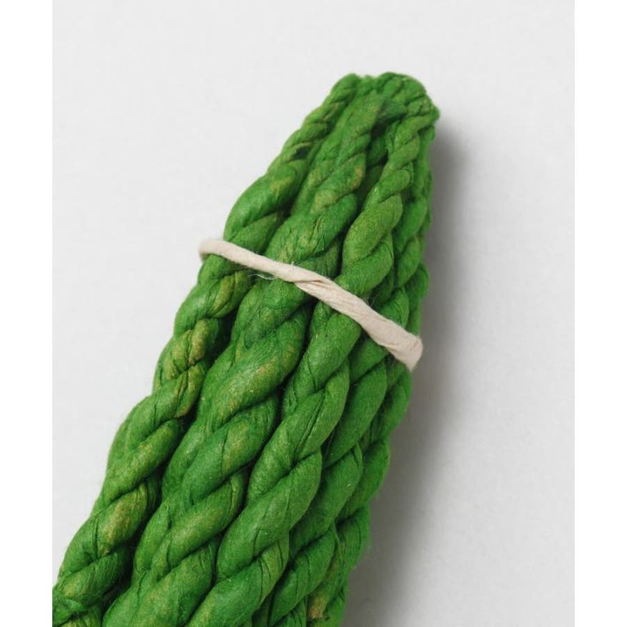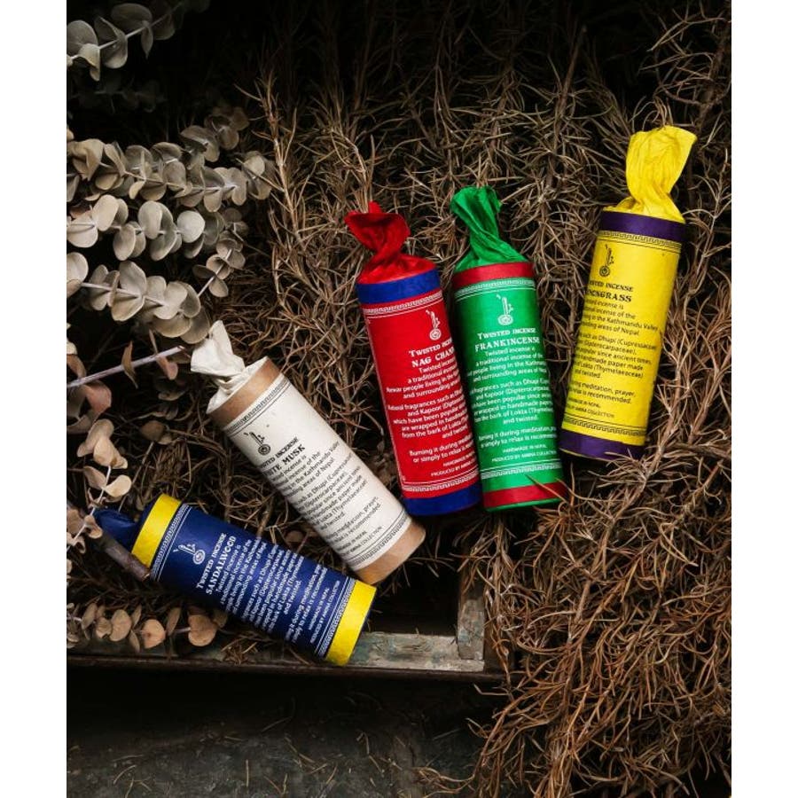 ネパール古来の民族ネワール族のねじり香。ねじり香は古くからネパールで親しまれているお香で、チベットの祈祷旗「タルチョ」のデザインで五種類の香りが選べる。糊などの成分が入っていないので、純度が高く素朴な香りが特徴。専用のお香たてにつるして焚くとより非日常の空間に。