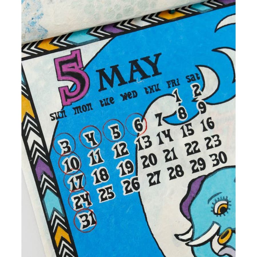 アフリカ大陸でたくましく生きる動物たちをユーモラスに描いた、ネパール製手漉き紙のカレンダー。アフリカの現代アート「ティンガティンガ絵画」からインスピレーションを受けた、力強い線とカラー、動物達のユニークな表情がポイント。モダンなお部屋にもぴったり。アート感覚でお部屋を演出してくれます。