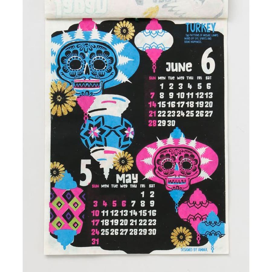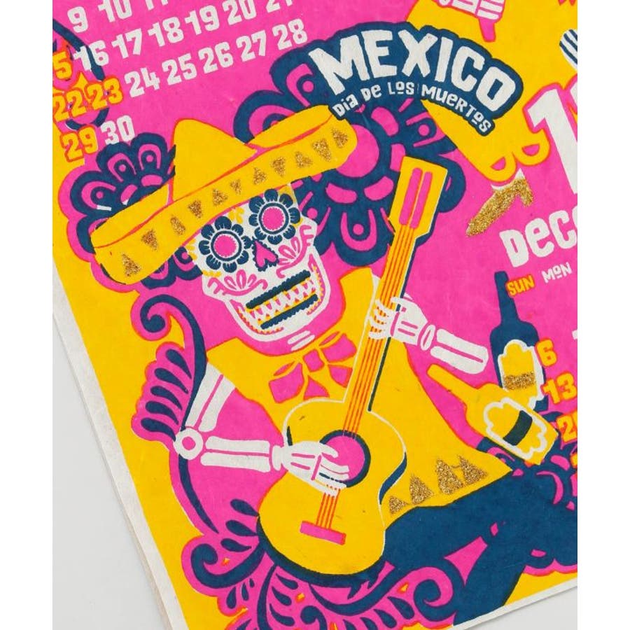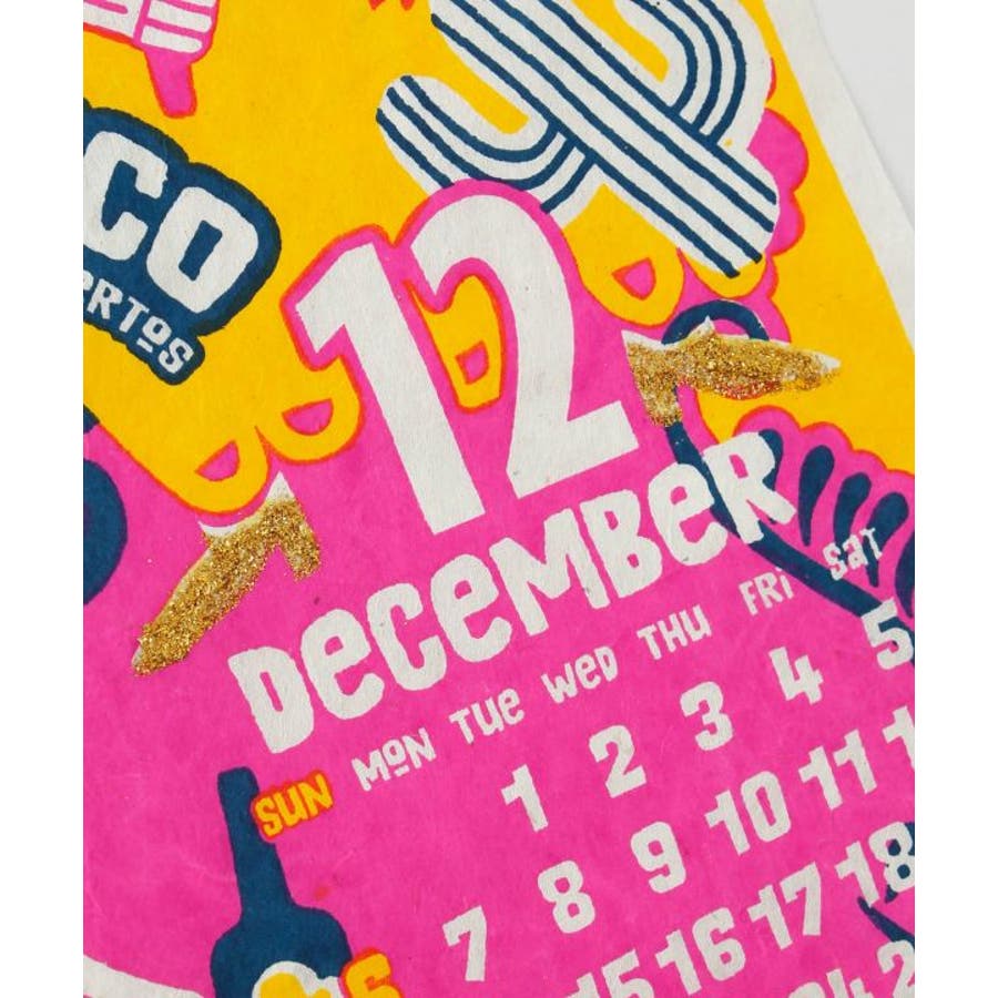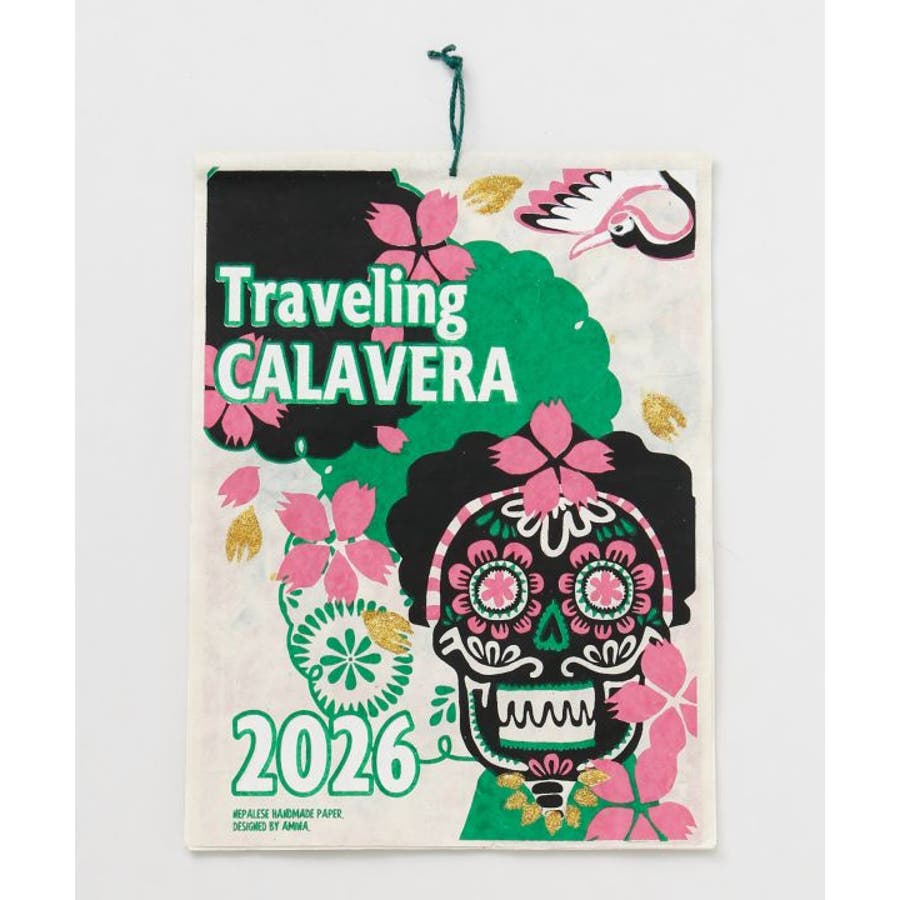 世界各国を旅行するカラベラ達が描かれたカレンダー。中国の春節、日本でのお花見、最後はメキシコに戻って死者の日パーティ。1年を通して彼らの旅を楽しめる。ネパールのハンドメイドの手漉き紙を使用した、温もりたっぷりのカレンダー。
