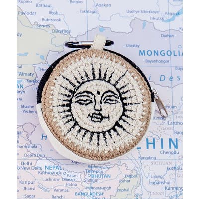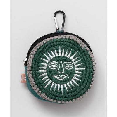 【世界を回る丸ポーチ-Nepal-】世界中の個性豊かな手仕事が光るシリーズ。こちらはネパールの女性たちが手編みしたコットンニットを使用。カラビナ付きで身の回りの小物類やIC乗車券などのカード類を持ち歩くのに便利。自分だけのこだわりに胸が躍る。