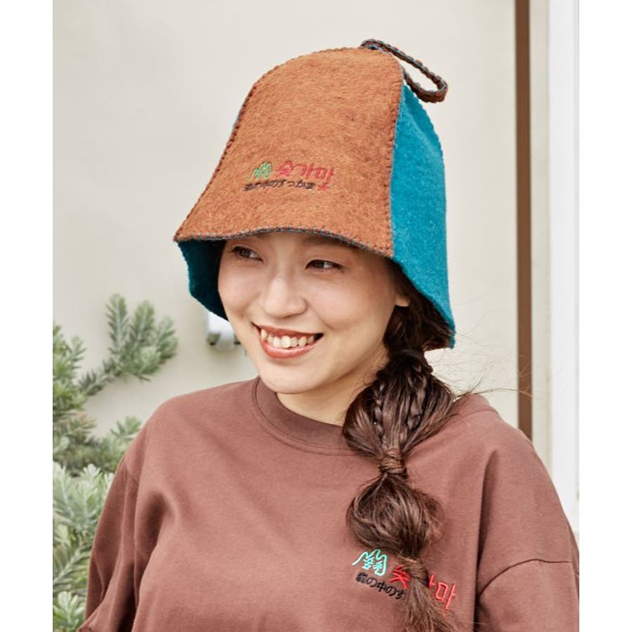 【Amina×森の中のすっかま】ウール100%のサウナハット。スッカマは韓国流のサウナで韓国語の刺しゅうの意味は森の中の炭窯。