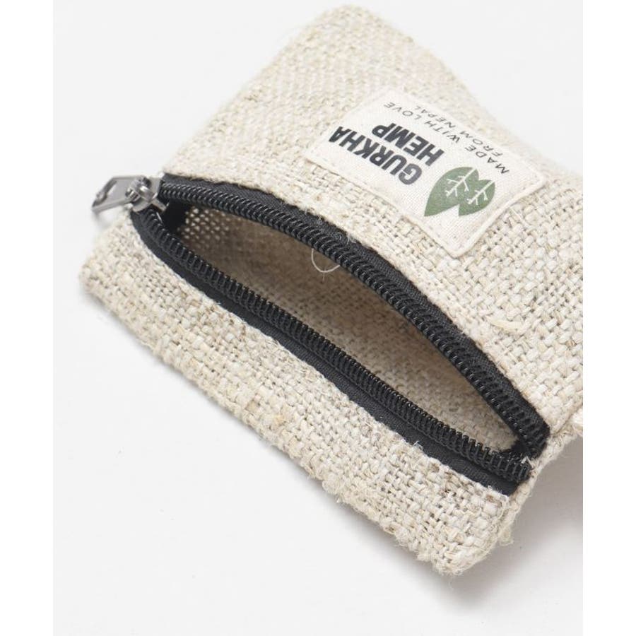 ネパールのワイドヘンプで編まれた生地のシンプルで使い易いポーチ。コインパースだけでなく、イヤホンや小物入れとして、カラビナを付けて多様な使い方も楽しめる。
