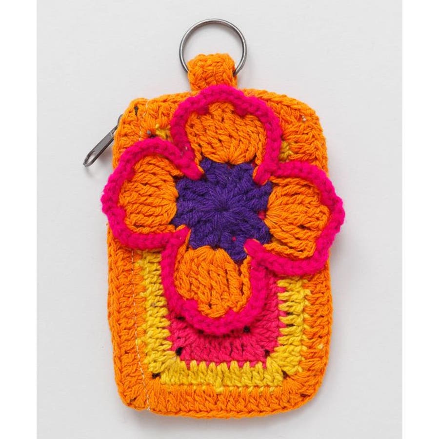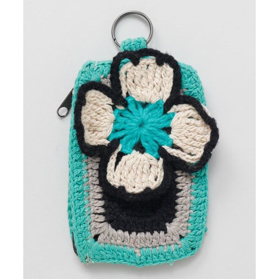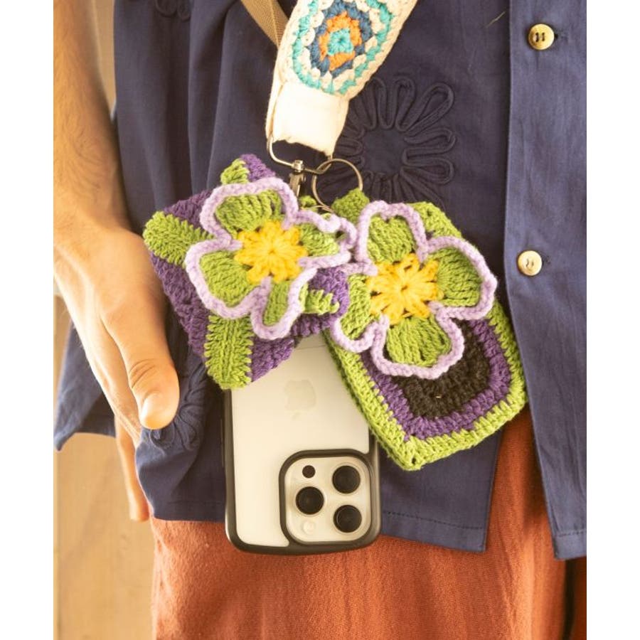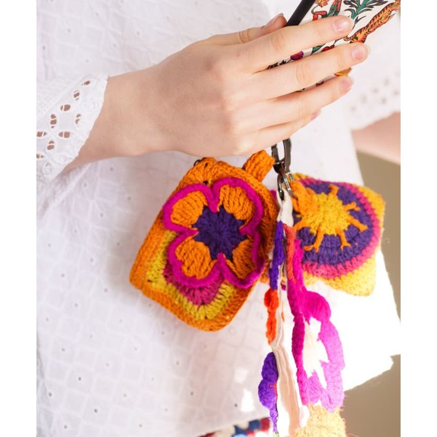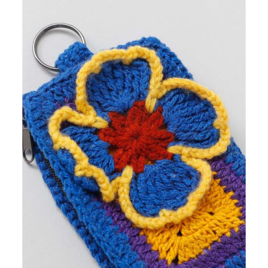 インド、ネパールの旅先で出会う花売りやフラワーマーケットをイメージした、カードサイズのネパールの手編みポーチ。立体的なお花が可愛らしいアイテム。リング付きなのでカラビナなどに通して、バッグやスマホストラップに付けて自分流にカスタムをお楽しみください。
