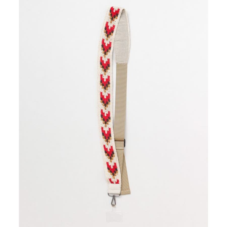 ネパールの温かみのあるハンド二ットのストラップ。ユニセなアロー柄。クリアトラップシート付き。長さ調節もできて、肩掛け可能。スマートフォンやお気に入りのカメラなどをつけて出かけよう。