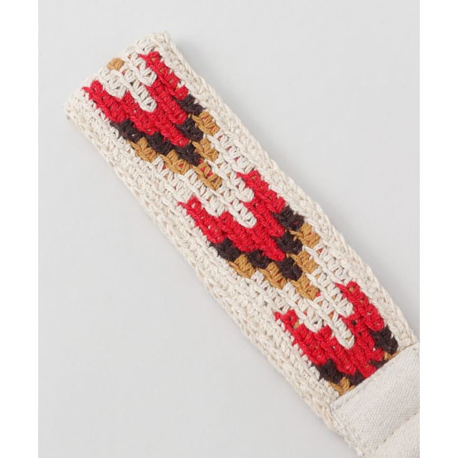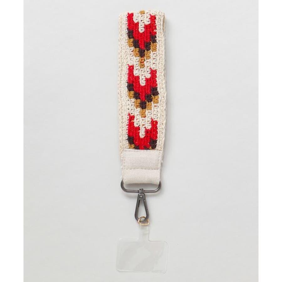 ネパールの温かみのあるハンド二ットのストラップ。ユニセなアロー柄。クリアトラップシート付き。スマートフォンやお気に入りのカメラなどをつけて出かけよう。
