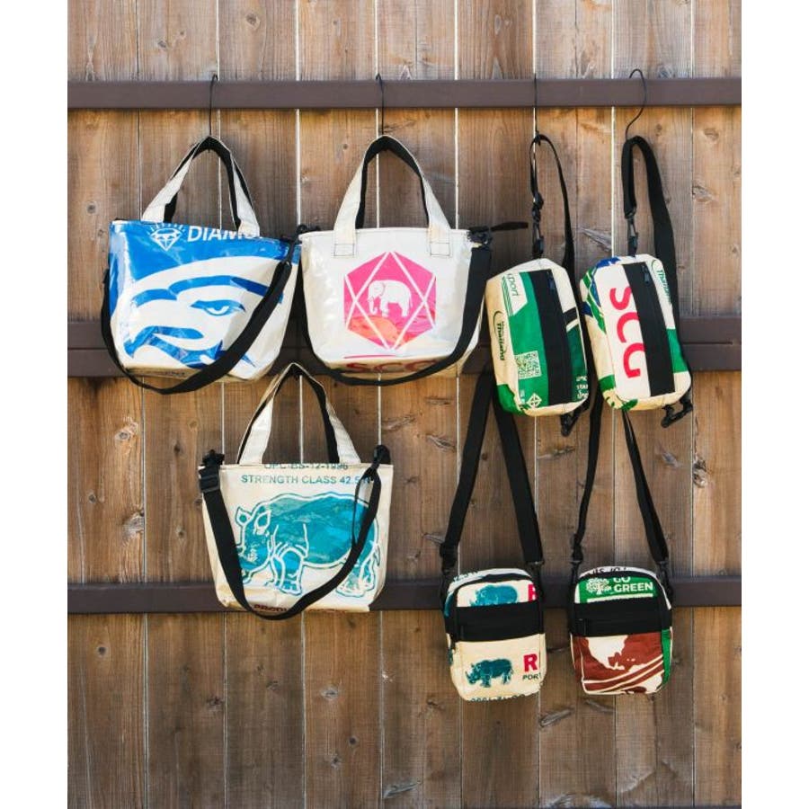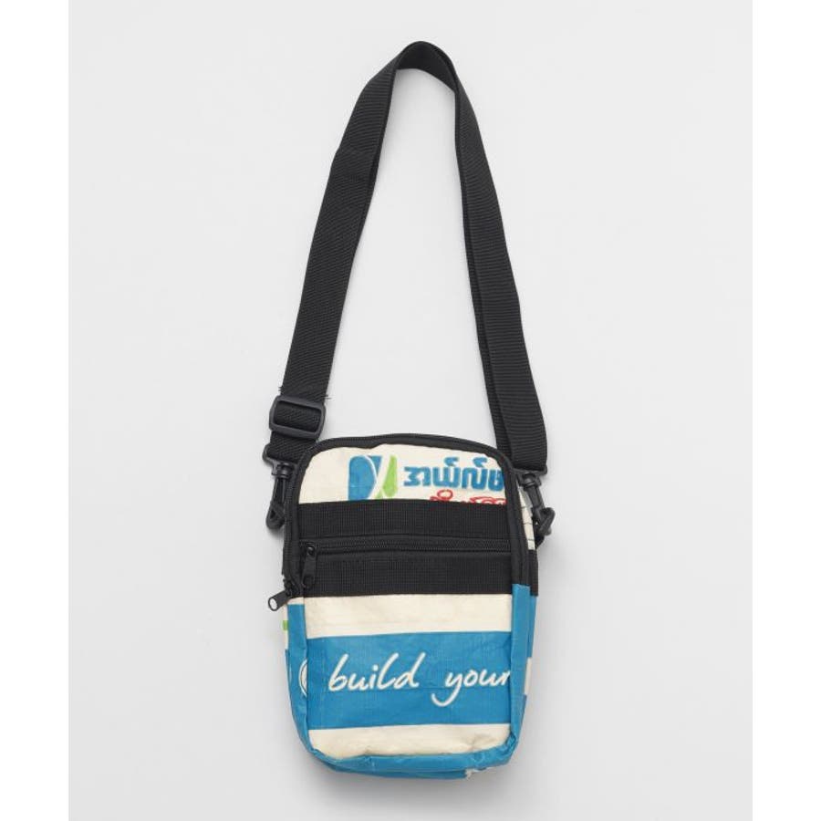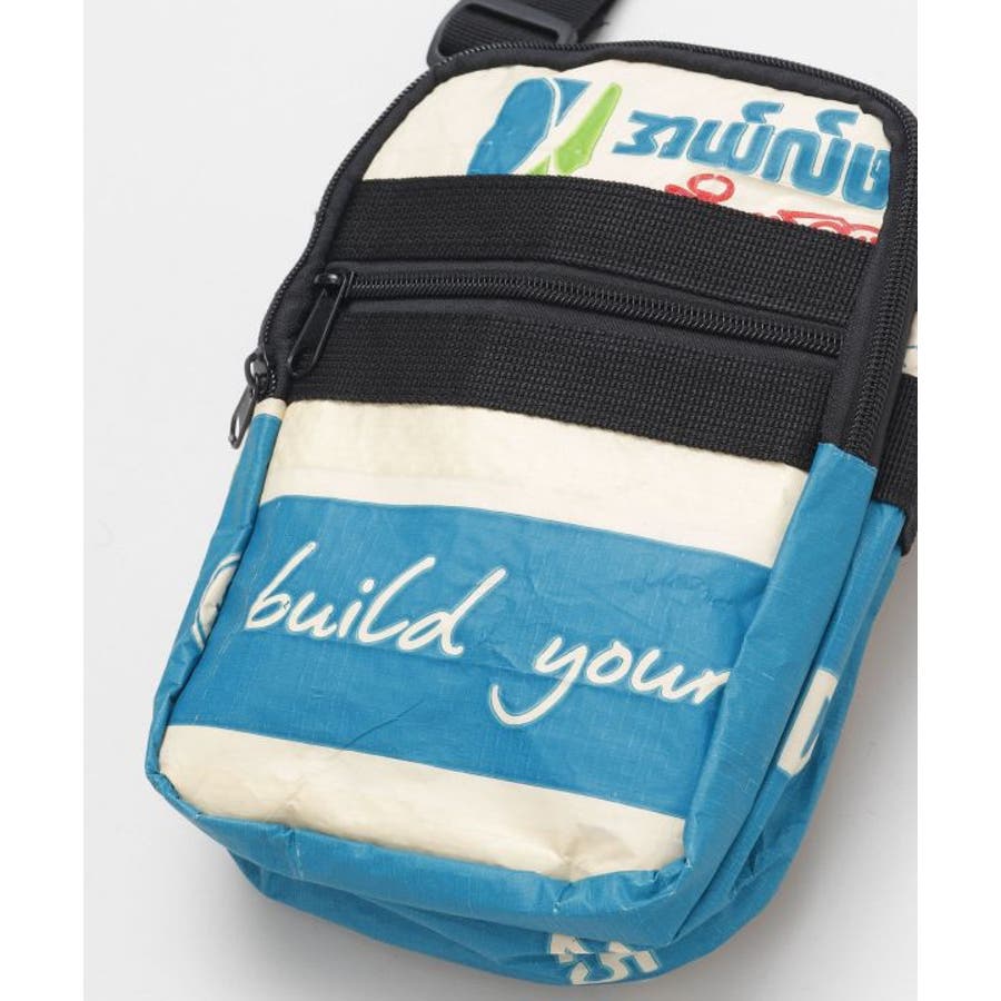 【タイ直輸入】セメントを入れる袋を使用したボディBAG。水を弾くのでアウトドアにもおすすめ。肩紐が太いので圧迫感も少ない。軽量でストレスフリーなアイテム。※商品一点ずつ柄の出方が異なります。