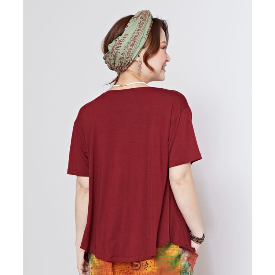 【タイ直輸入】落ち感のあるやわらかなレーヨン素材が心地よいTシャツ。無地なので様々なスタイルに合わせられるのがポイント。広めの首元が涼しげな印象を演出してくれる。一枚は持っておきたい万能Tシャツです。