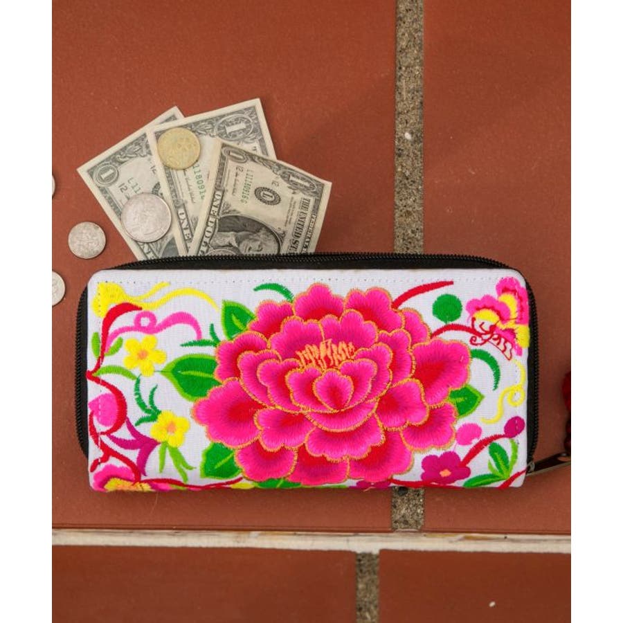 モン族の伝統的な柄を大胆に使ったロングウォレット。収納スペースも大きく、カードもたくさん仕舞える仕様。※商品一点ずつ柄の出方が異なります。